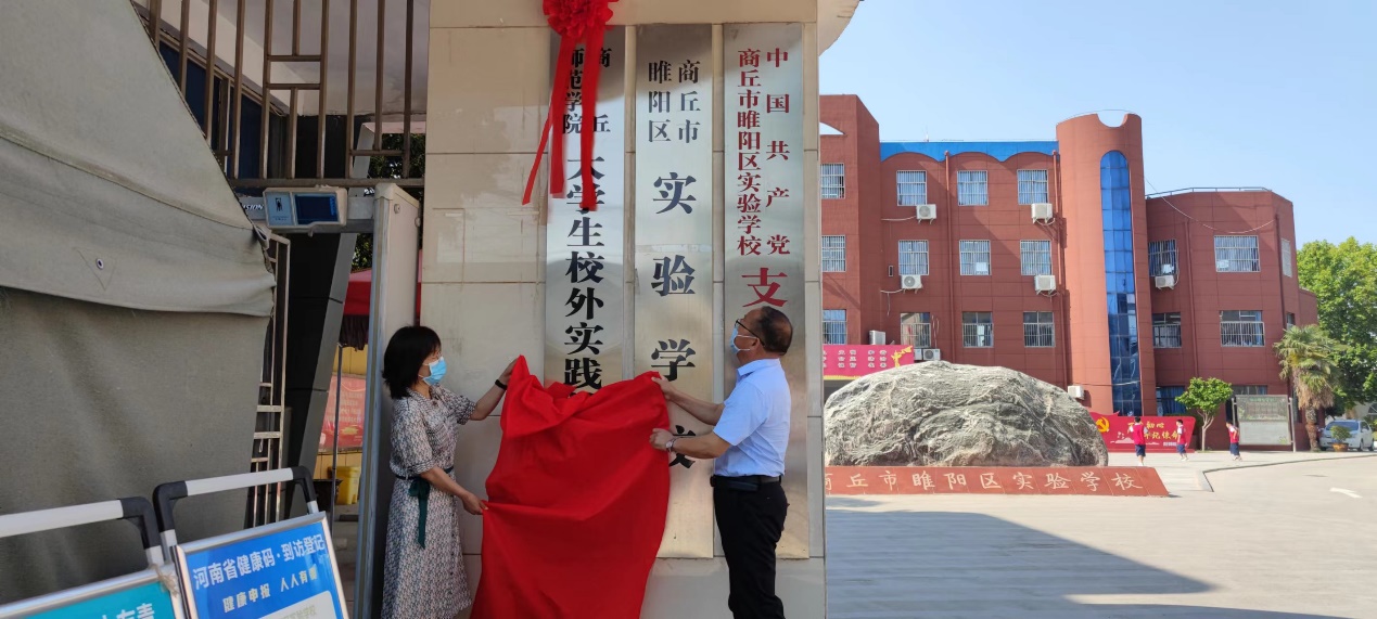 6月17日上午,万象城娱乐awc线路院长王春霞、副院长刘佳和柴晓辉、李广军老师一行4人到商丘市睢阳区实验学校考察交流,并为该校授牌“万象城娱乐awc线路大学生校外实践教学基地”。商丘市睢阳区实验学校校长胡丕需、政教处主任郑选玉等领导参加授牌仪式。