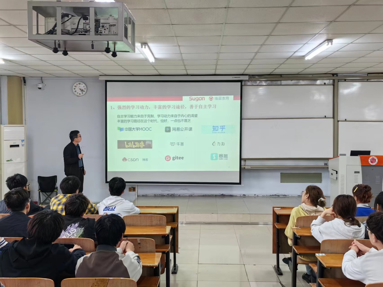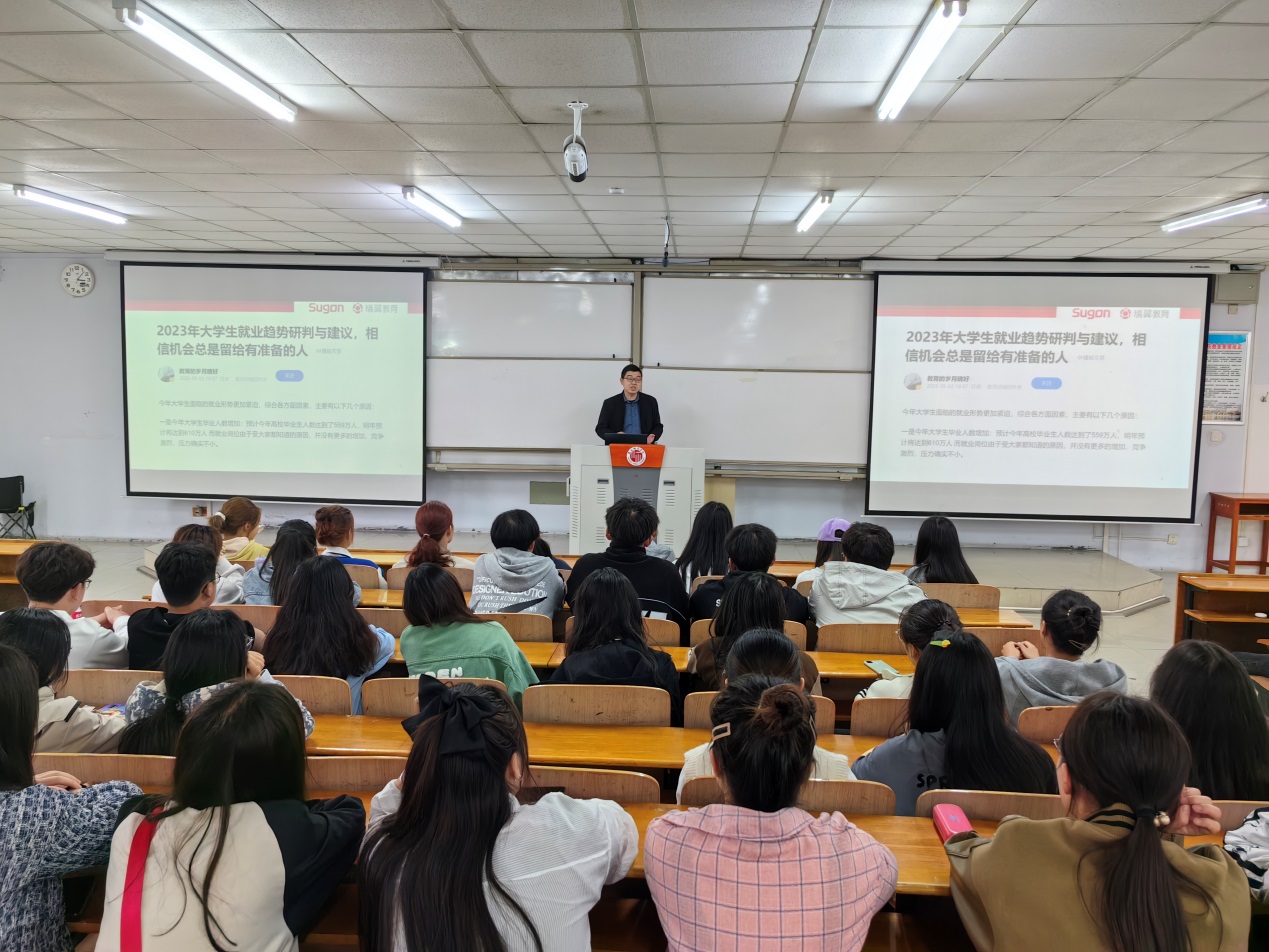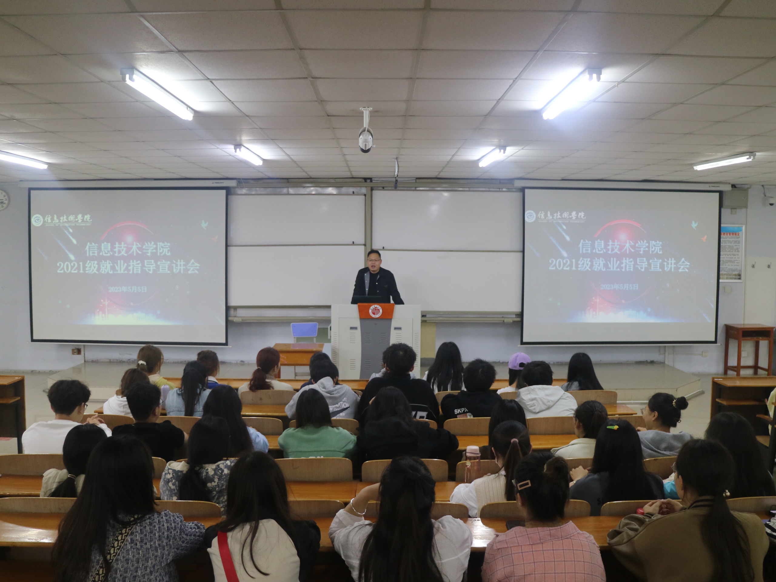 5月5日,万象城娱乐awc线路在智圆楼207教室举办了2021级学生就业指导宣讲会。宣讲会由2021级辅导员老师彭会锋主持,中科曙光驻校项目经理高向楠主讲,万象城娱乐awc线路2021级本科班学生积极参与。