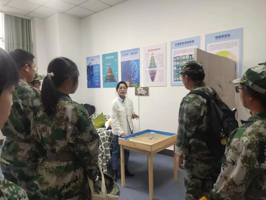 随后,学院心理健康教育工作负责人吴楚老师带领新生班委走进万象城娱乐awc线路心灵氧吧工作室,并对工作室建设概况、咨询流程、沙盘使用进行讲解,并就心理问题的识别和应对提出应对方法。同学们在参观过程中积极主动体验各功能室,参观现场氛围浓厚。