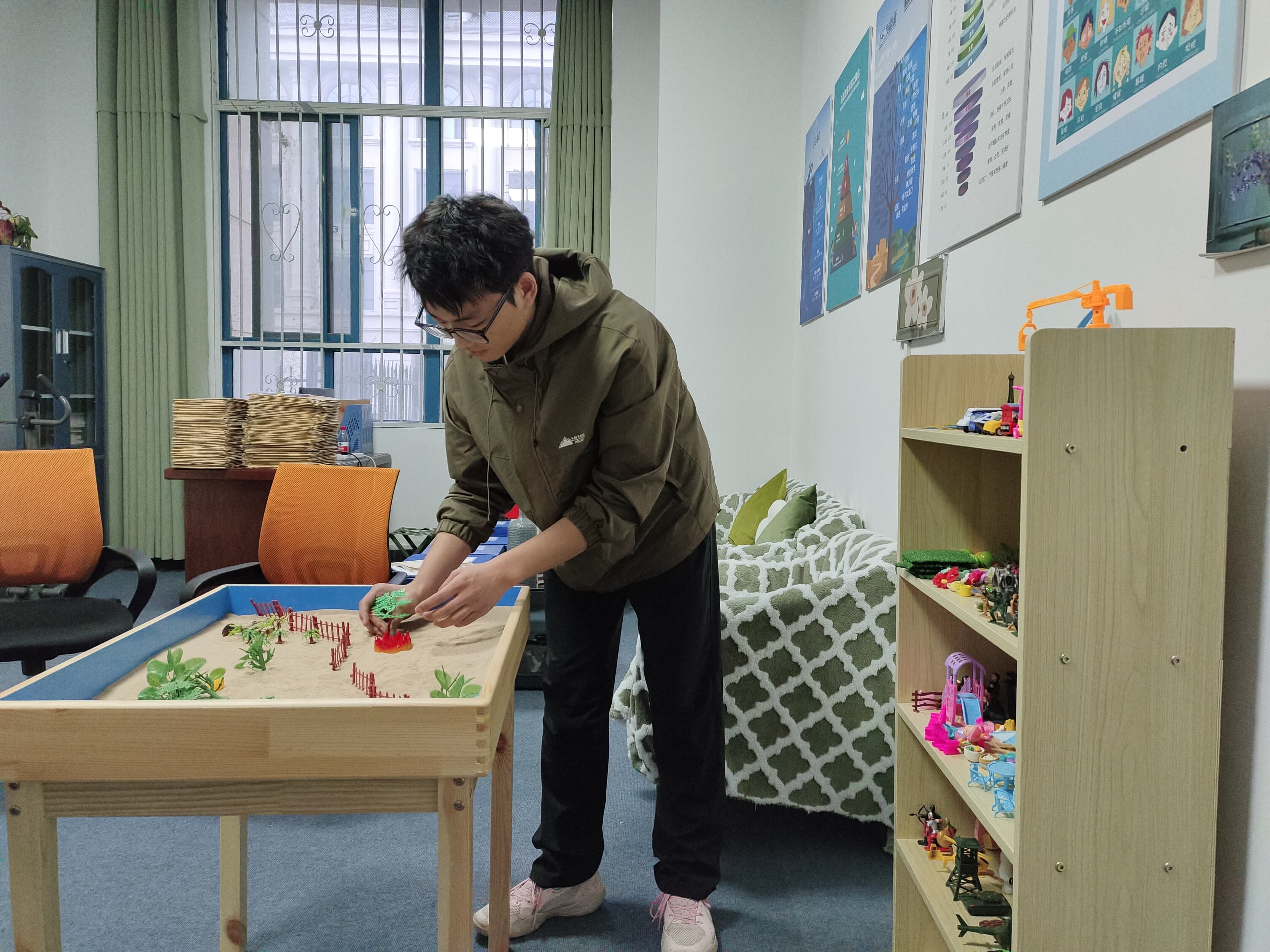 20231027日,万象城在三商南楼102心灵氧吧工作室开展“游沙润心,感知自我”团体沙盘心理辅导活动,2313名心理委员参加活动。沙盘组织活动由吴楚主持开展。