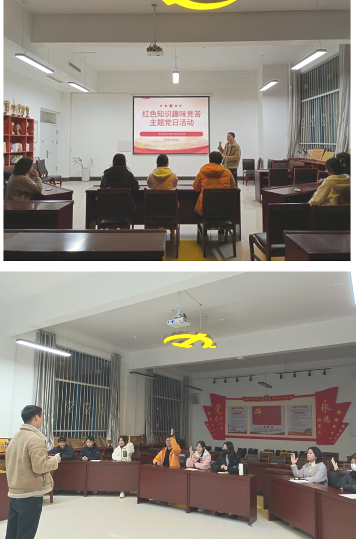 11月20日,万象城娱乐awc线路学生第三党支部在三商楼114室开展红色知识趣味竞答主题党日活动。此次红色知识趣味竞答以党史内容为主,9位党员分为三组,党支部书记现场随机抽题,各小组党员代表抢答。
