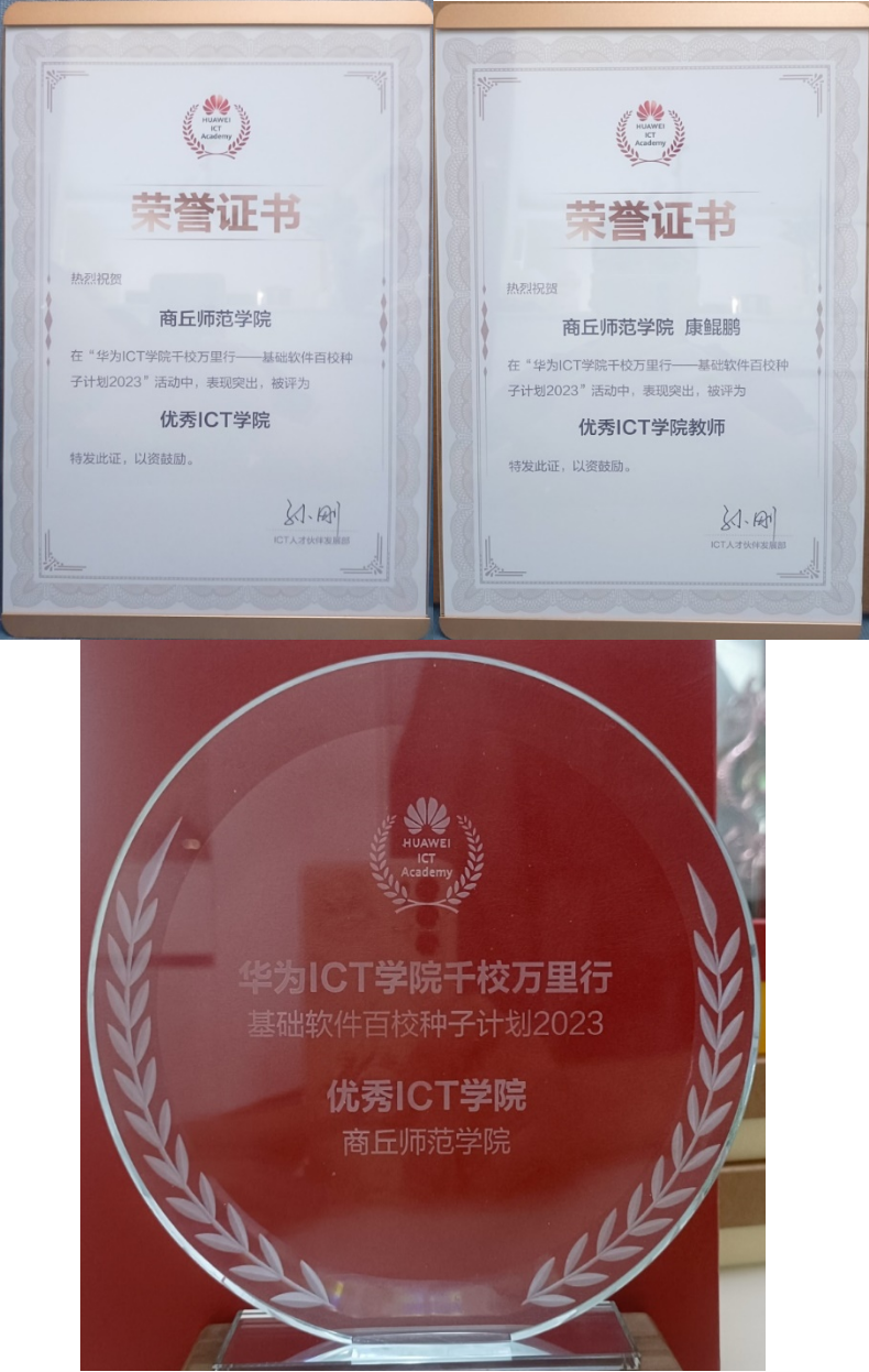 3月31日,华为ICT大赛2023-2024中国区总决赛暨基础软件百校种子项目颁奖典礼在厦门大学举办,万象城获得“华为ICT学院千校万里行——基础软件百校种子计划2023”优秀华为ICT学院荣誉称号,康鲲鹏老师获评优秀华为ICT学院讲师。