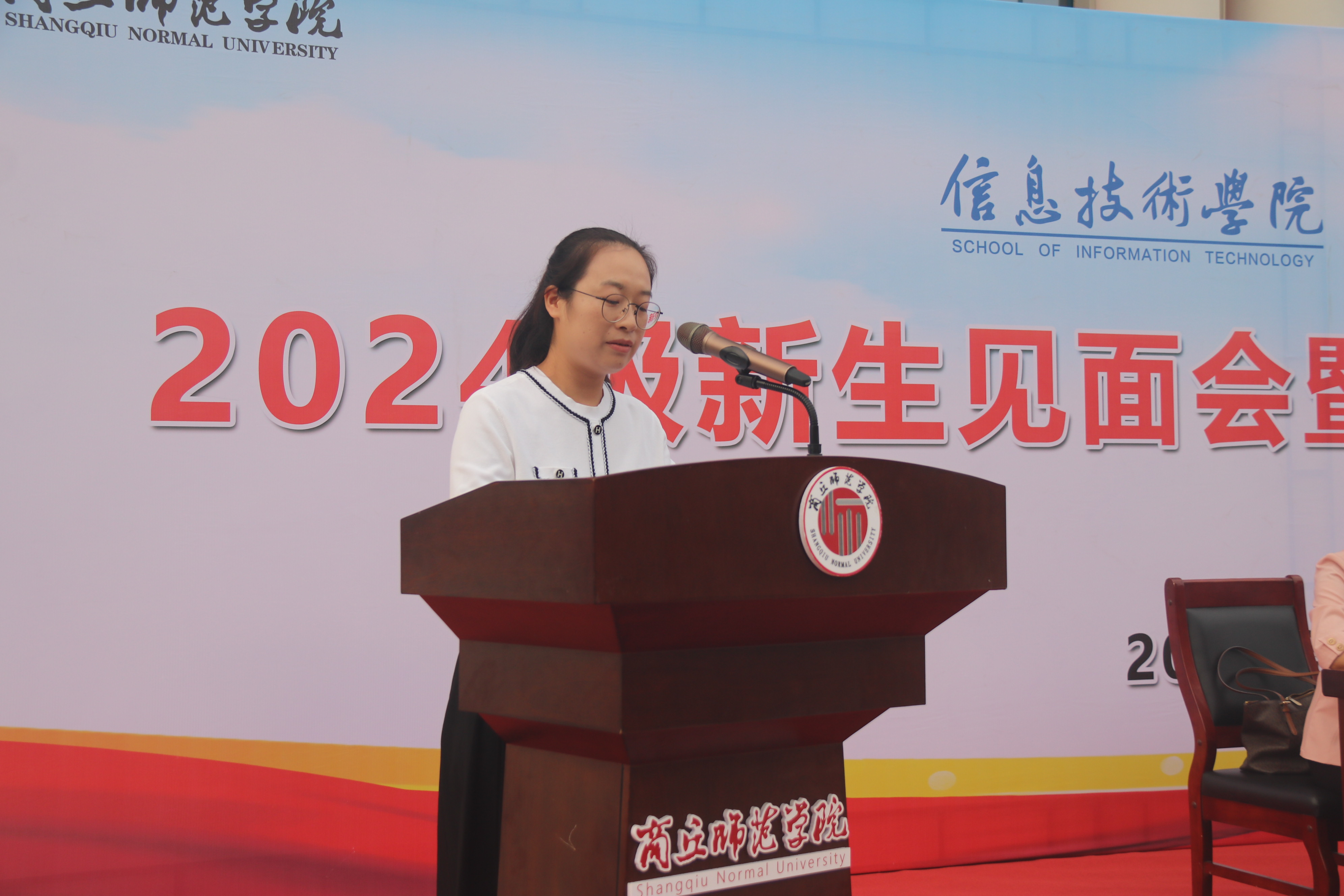 副院长刘佳、教师代表刘冠秀、学生代表李晨光分别从专业学习、科创竞赛和个人担当成长等方面分别给同学们做了分享,收获阵阵掌声。2024级计算机科学与技术专业新生冯舒佳代表全体新生做了表态发言。