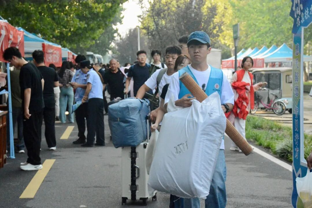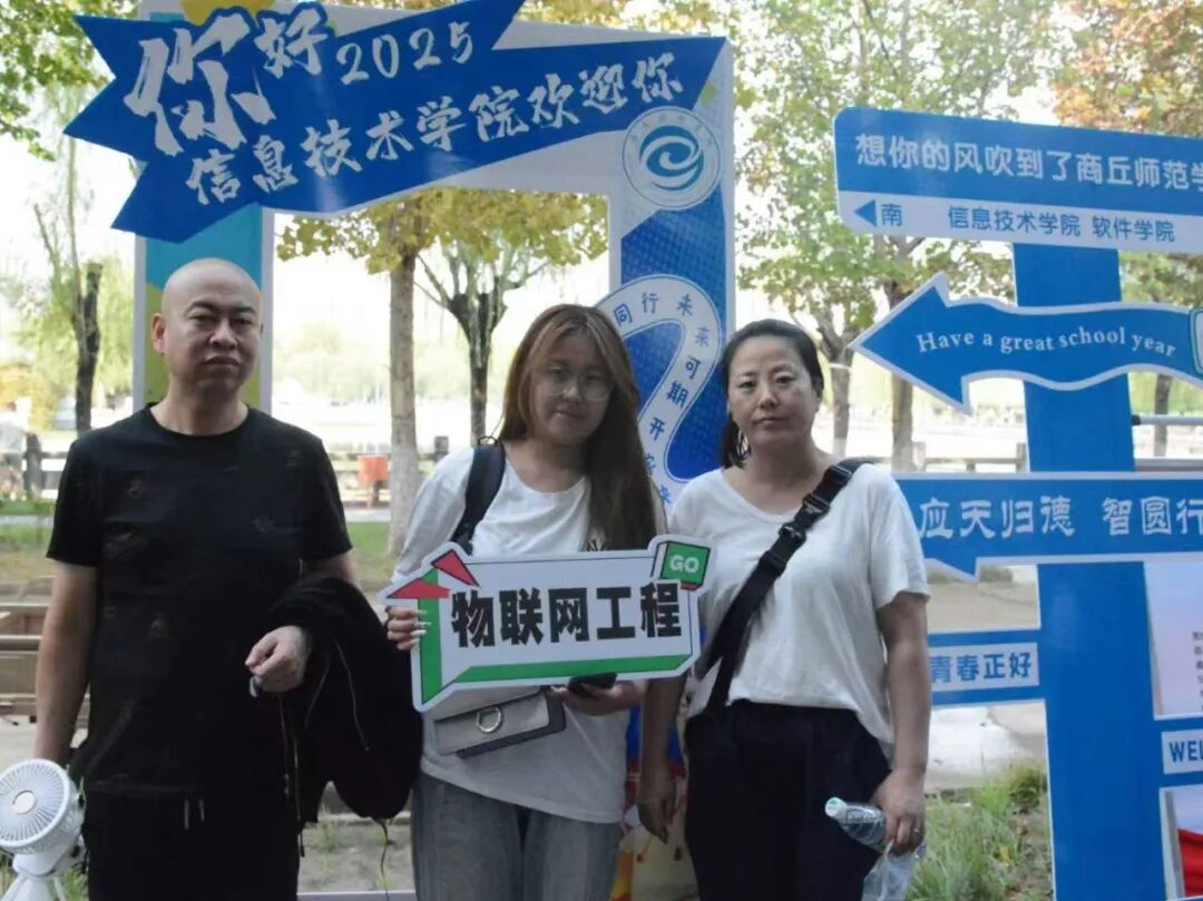 迎新点前,早已等候多时的领导老师和志愿者们,用最温暖的笑容和最热情的问候,迎接小萌新们的到来。每一声问候、每一次伸手、每一件行李的传递,让小萌新们真正感受到了来自“信息人”的第一份温暖。