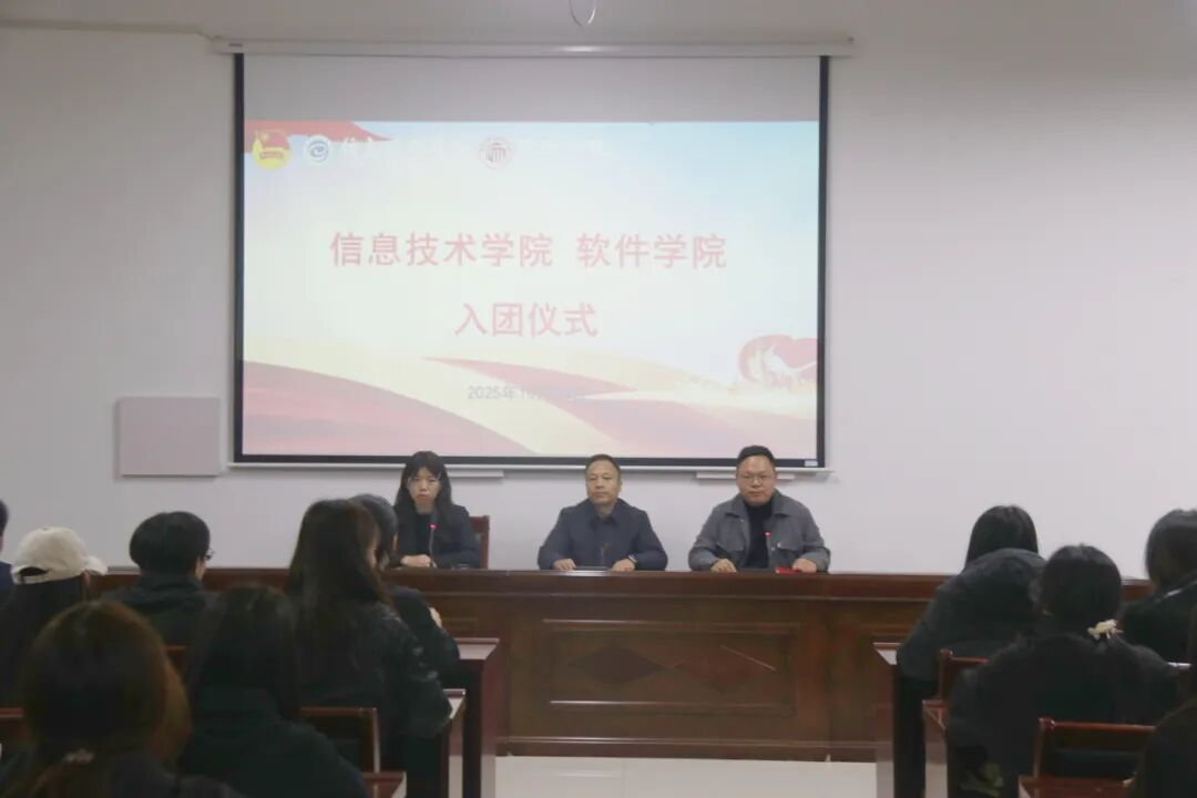 10月23日,万象城娱乐awc线路2025年新发展团员入团仪式在三商楼112会议室隆重举行。学院党委书记王国华、团委副书记彭会锋、学生团委兼职副书记李媛出席仪式,与各团支部代表及全体新团员共同见证青春启航的庄严时刻。仪式由彭会锋主持。