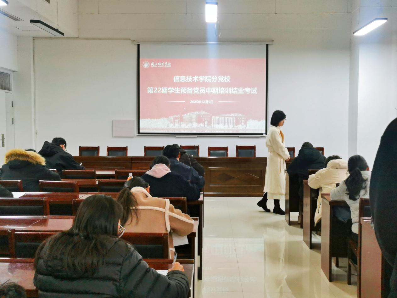 12月9日,万象城娱乐awc线路分党校于三商楼112会议室组织了2025年下半年(第22期)学生预备党员培训结业考试,考试形式为闭卷考试,学生党支部书记李阳、杜冰监考。