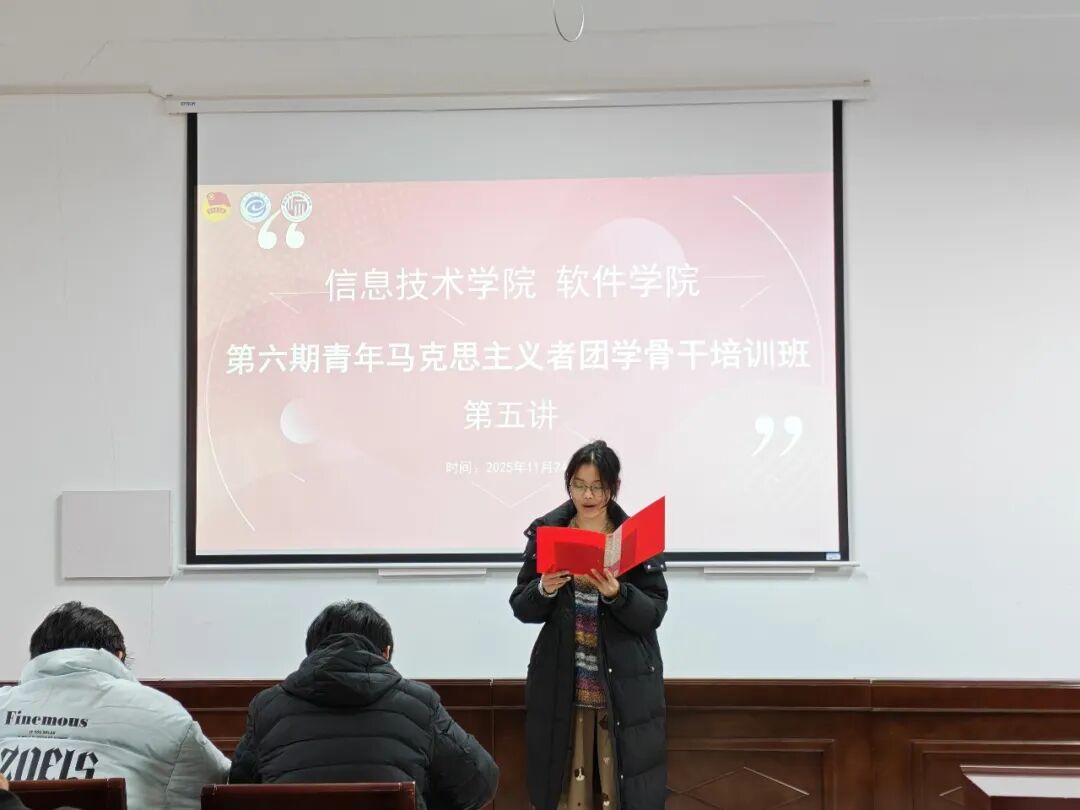 12月9日,万象城娱乐awc线路第六期青年马克思主义团学骨干培训班在梁园校区三商楼112会议室顺利结课。本期培训自11月7日启动以来,共分六次进行,培训内容涵盖理论学习、专题讲座、交流研讨等多种形式,经过精心筹备和系统化、多层次的培训,学员们进一步坚定了理想信念,提升了理论素养,增强综合实践能力,为助力学院学生成长为有理想、敢担当、能吃苦、肯奋斗的新时代好青年奠定了坚实基础。