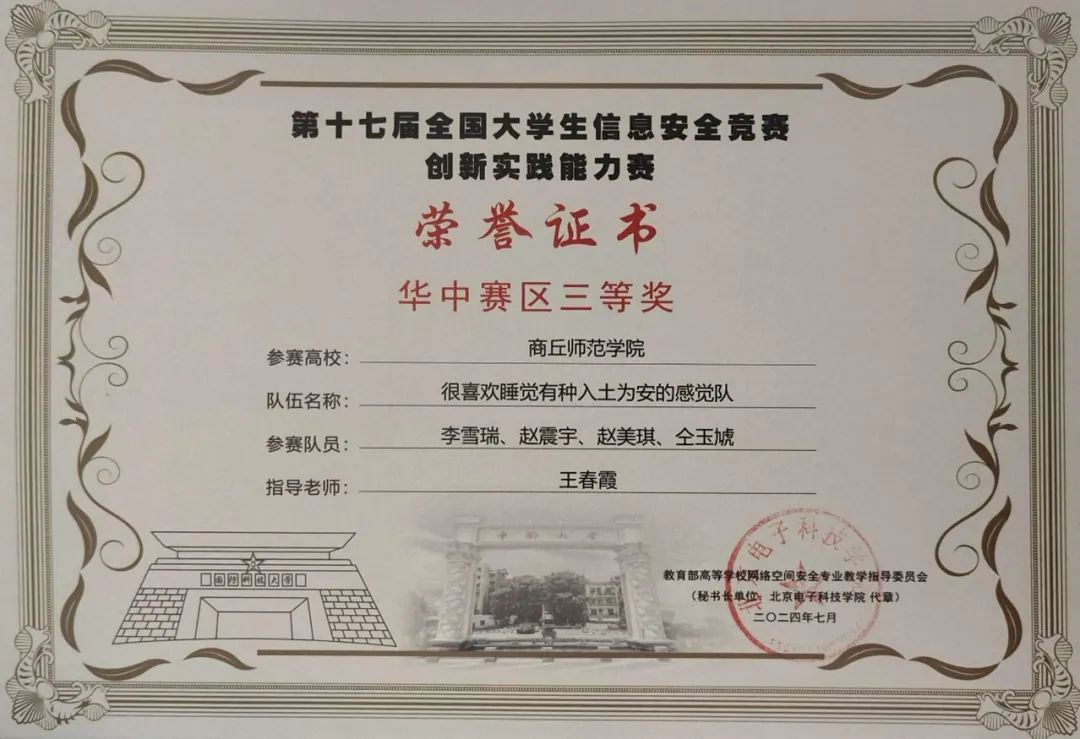 近日,由教育部高等学校网络空间安全专业教学指导委员会主办,四川大学承办的第十七届全国大学生信息安全竞赛-创新实践能力赛落下帷幕,本次比赛吸引了全省近三百支精英队伍参赛。万象城派出两支代表队,最终两支队伍全部入围线下赛,团体赛荣获三等奖。