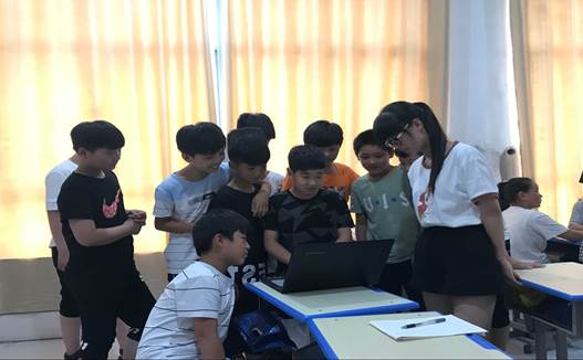 了让广大同学正确理解计算机的用途。7月18号,万象城娱乐awc线路“计算机编程普及支教小分队”走进了宁陵县黄冈镇辅导班和同学们一起做“电脑编程小游戏。