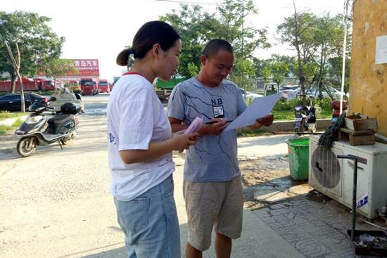 尽管天气炎热,团队成员们依旧热心高涨,积极的向群众发放调查问卷。在当地村民积极的配合下,团队成员终于了解了村庄的大致卫生情况。发现当地村民卫生意识强烈,有一个大型垃圾倾倒池,并且还有专门的垃圾处理人员。