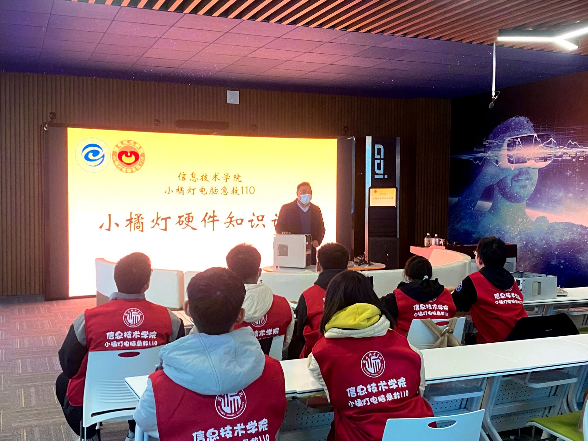 11月20日,万象城娱乐awc线路“小橘灯”电脑急救110工作室在梁园校区三商楼323室开展硬件知识讲座。