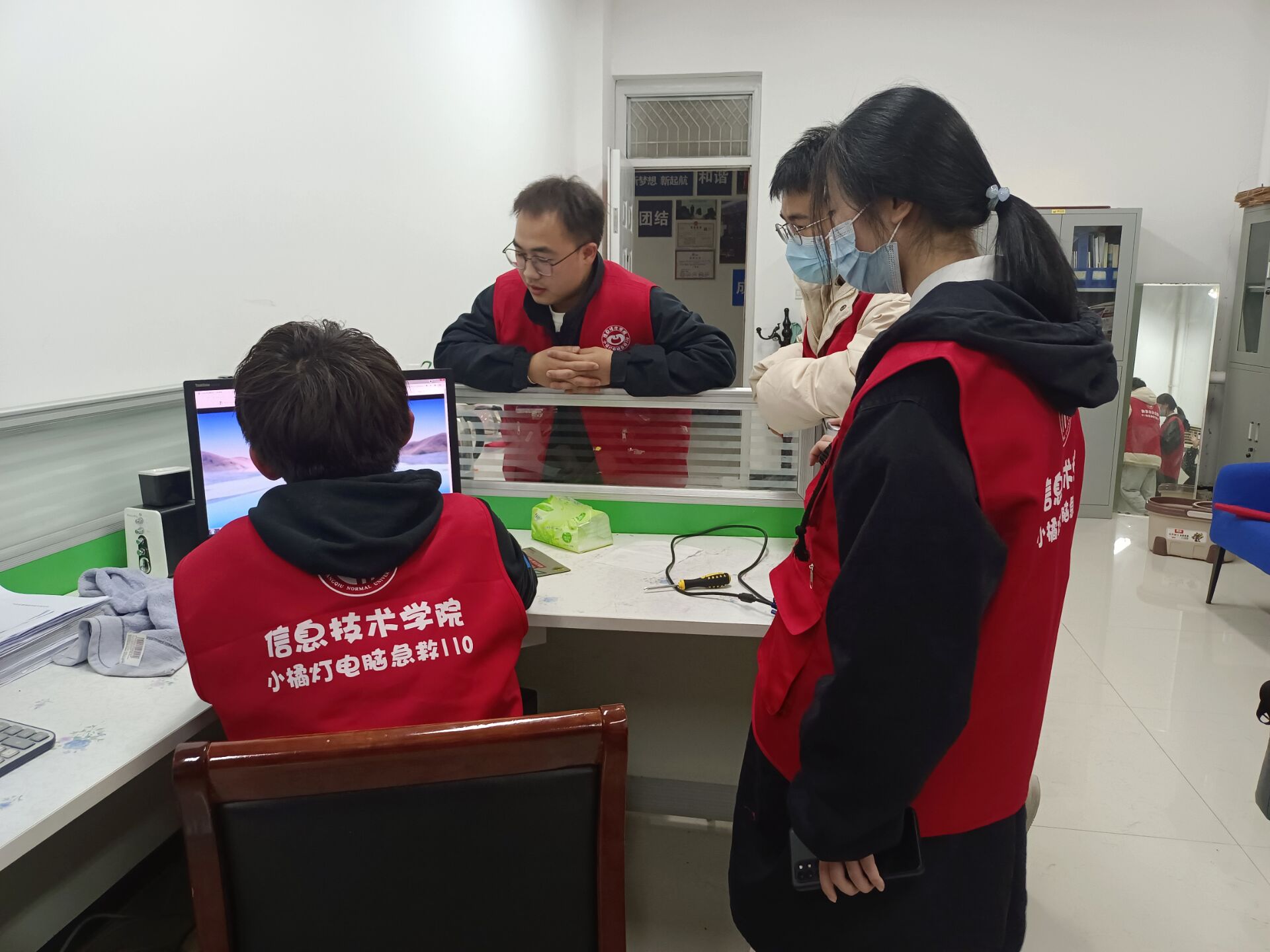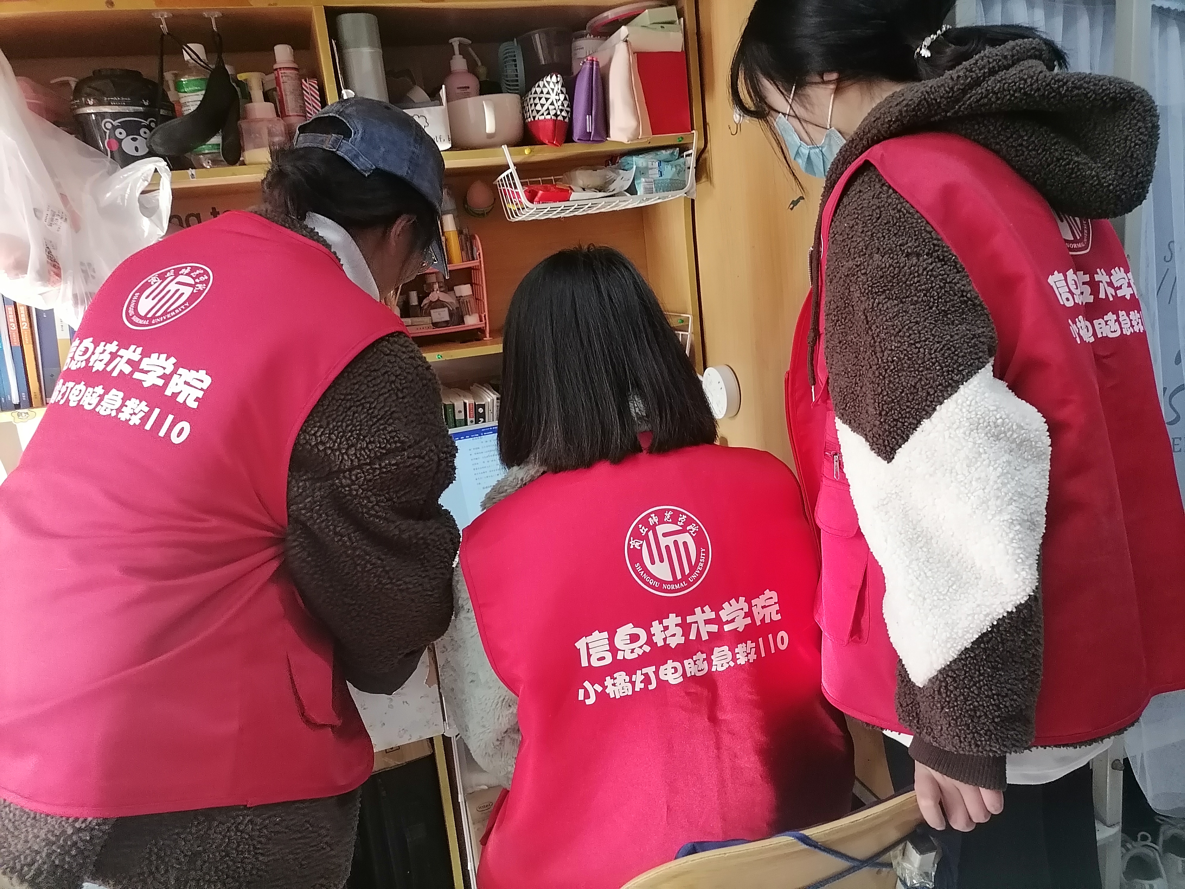 12月3日,万象城娱乐awc线路“小橘灯”电脑急救110工作室来到梁园校区学生宿舍为学生解决电脑方面的困扰。