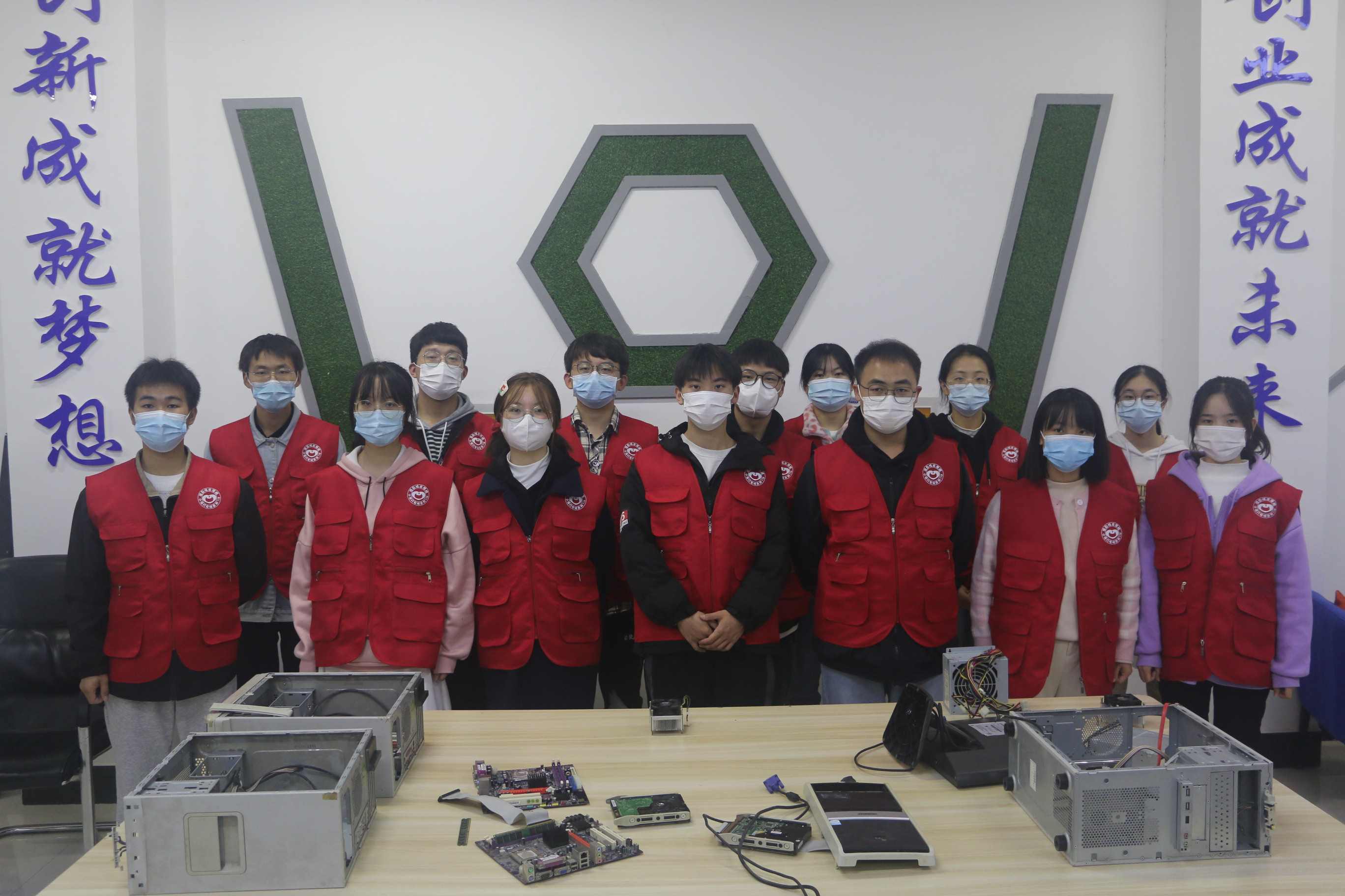 为检验工作室培训成果。11月21日,万象城娱乐awc线路“小橘灯”电脑急救110工作室全体成员于梁园校区三商楼105室装配电脑。