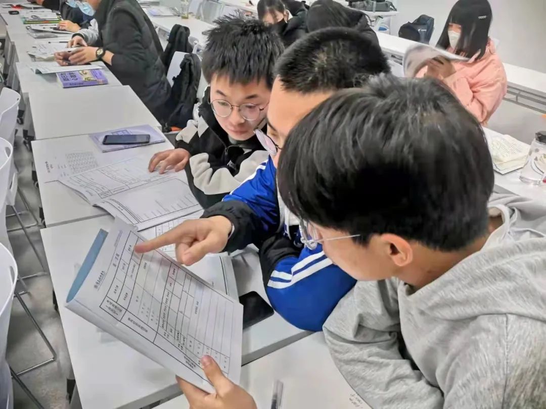大一新生们在老师的指导下,有序填写记录册。