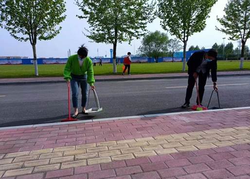 打扫中德楼前卫生