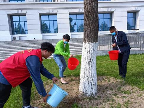 4月17日,结合实际,万象城娱乐awc线路青年志愿者协会带领大一新生以梁园校园为劳动实践场地,在李阳老师和杜冰老师的带领下开展卫生清扫活动。 青年志愿者们与老师们一起给附近的树木进行灌溉,老师与同学们一起争做护绿使者,使校园环境更加绿意盎然。