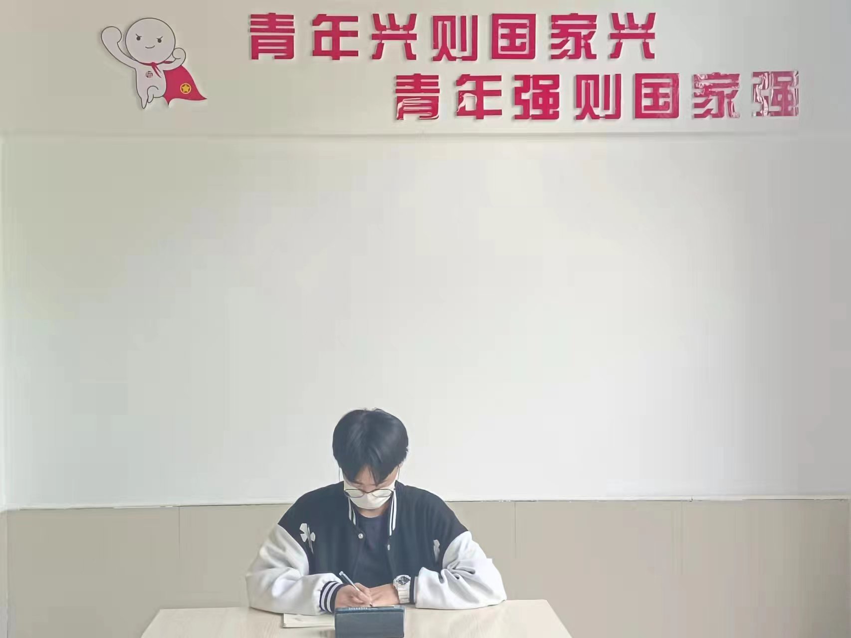 习近平总书记在庆祝中国共产主义青年团成立100周年大会上指出,“青年一代有理想、有担当,国家就有前途,民族就有希望。”为我们青年一代指明了方向,让我明白,要始终坚定信念,饱含热情,以不屈的意志,迎接一轮又一轮的挑战。作为共青团员,我们要始终要以党的旗帜为引领,以党的意志为意志,党的方向为方向,坚决拥党的领导,履行团员义务,始终做好党的忠实助手和可靠后备军!