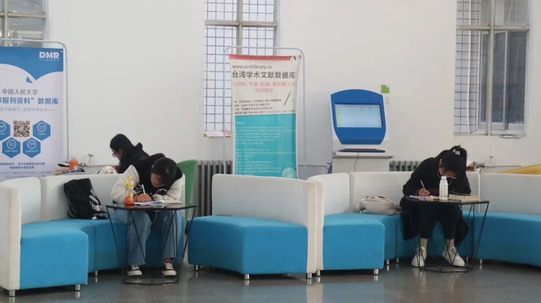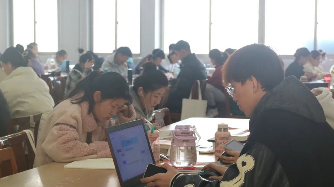 看,图书馆里一道道伏案学习的身影