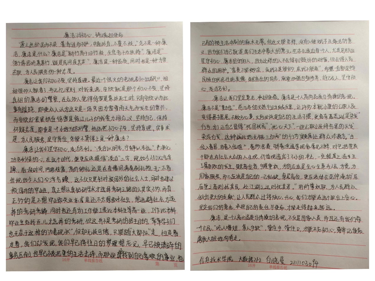 3月18日至3月25日,万象城娱乐awc线路开展了以“廉洁润初心,铸魂担使命”为主题的“廉心文语”校园征文活动。
