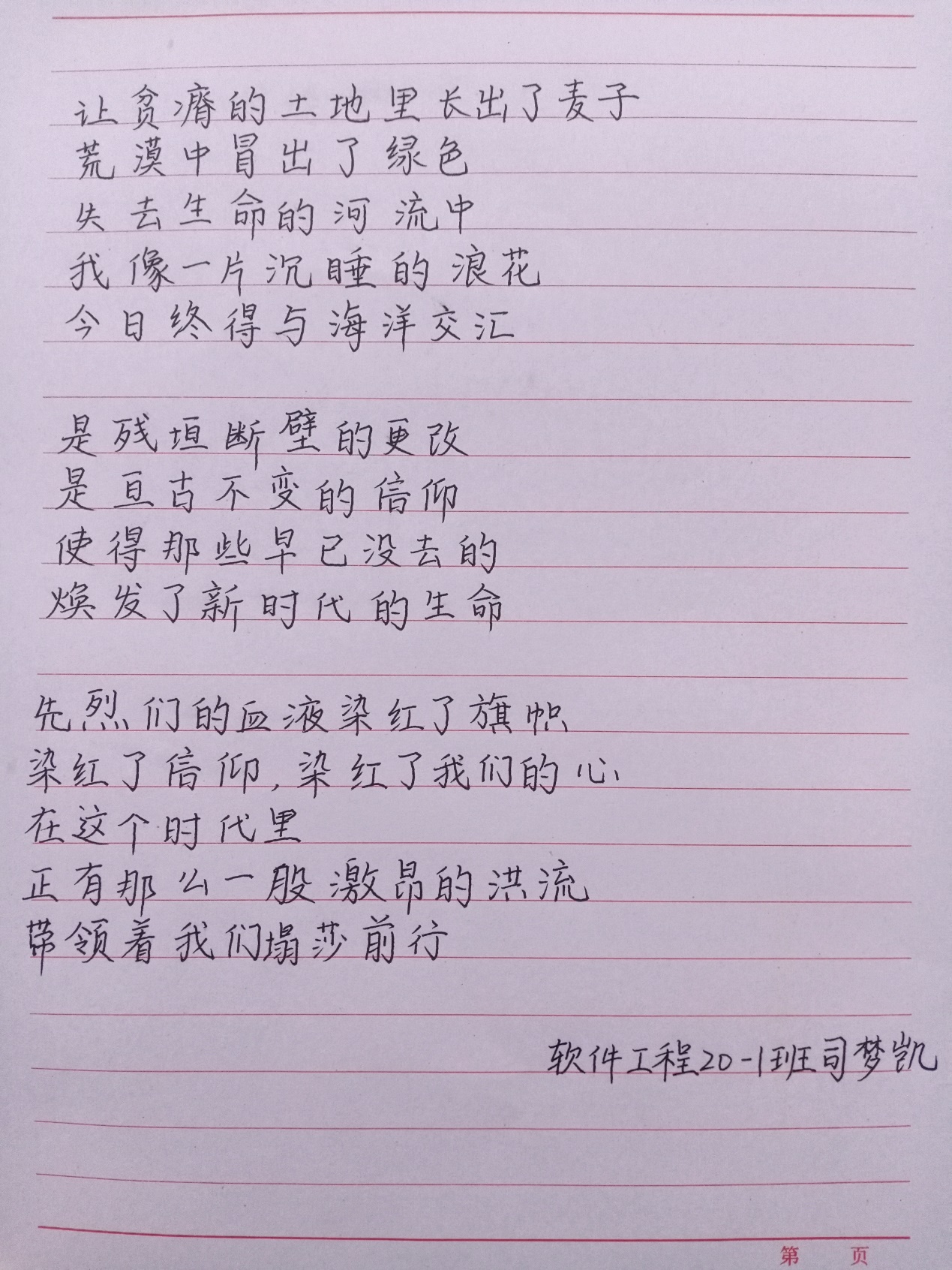 点点笔墨,勾勒出的是对党的热爱,段段词章,展现出的是对自身职责使命明悟。在党的光辉的照耀下,信息学子必将在属于自己一代人的长征路上踔厉奋发,勇毅前行。