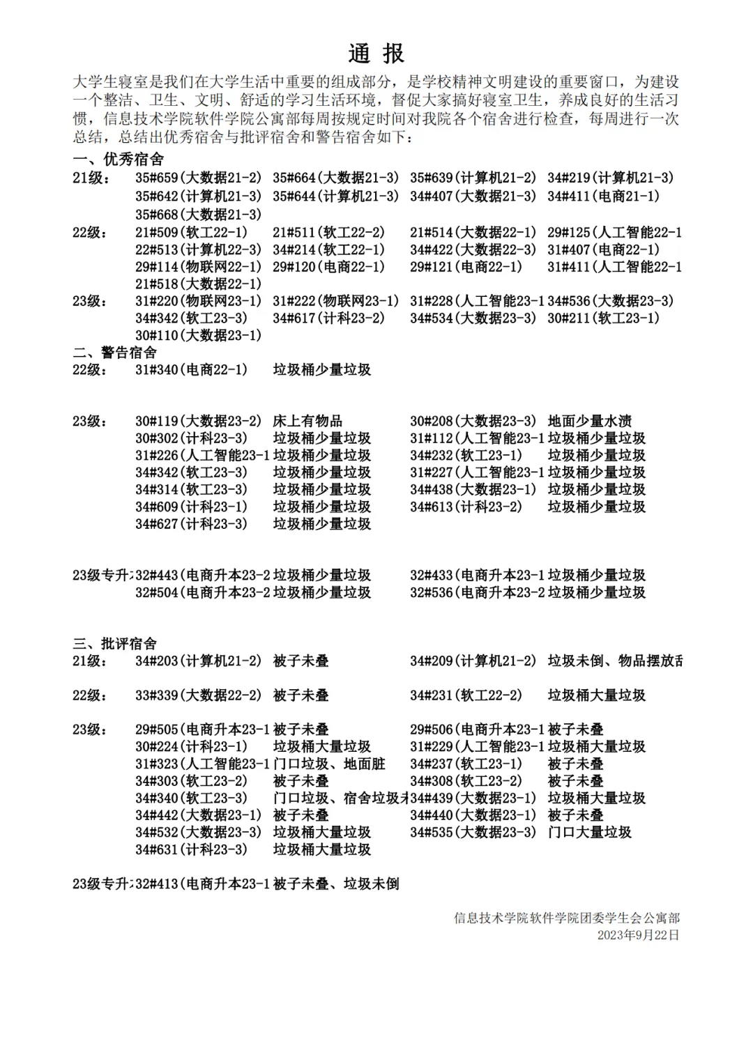 为营造安全、文明、卫生、舒适、和谐的宿舍环境,助力学院学生全面成长,9月21日,万象城娱乐awc线路团委学生会公寓部按时对全院学生宿舍进行巡查,现将巡查结果公布如下。同时也请大家共睹优秀宿舍的风采!!!