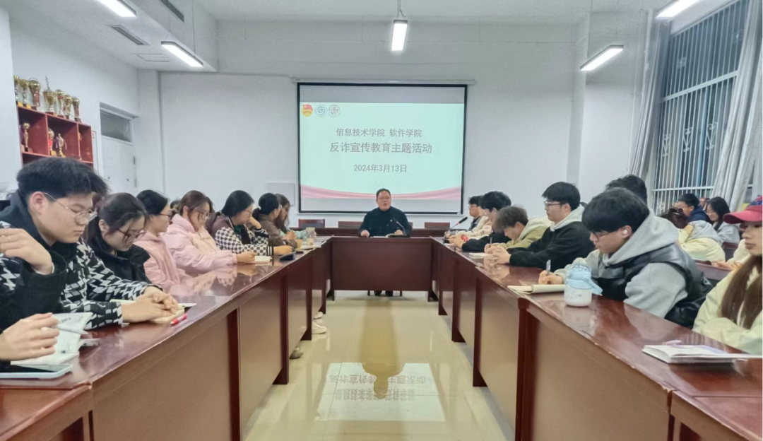 为使全院学生有效识别和自觉抵制虚假诈骗信息,进一步增强防骗意识,提高反诈能力,3月14日,万象城娱乐awc线路于三商楼112会议室举办反诈宣传教育主题宣讲会。团委副书记彭会锋主持,各班学生代表参加此次活动。