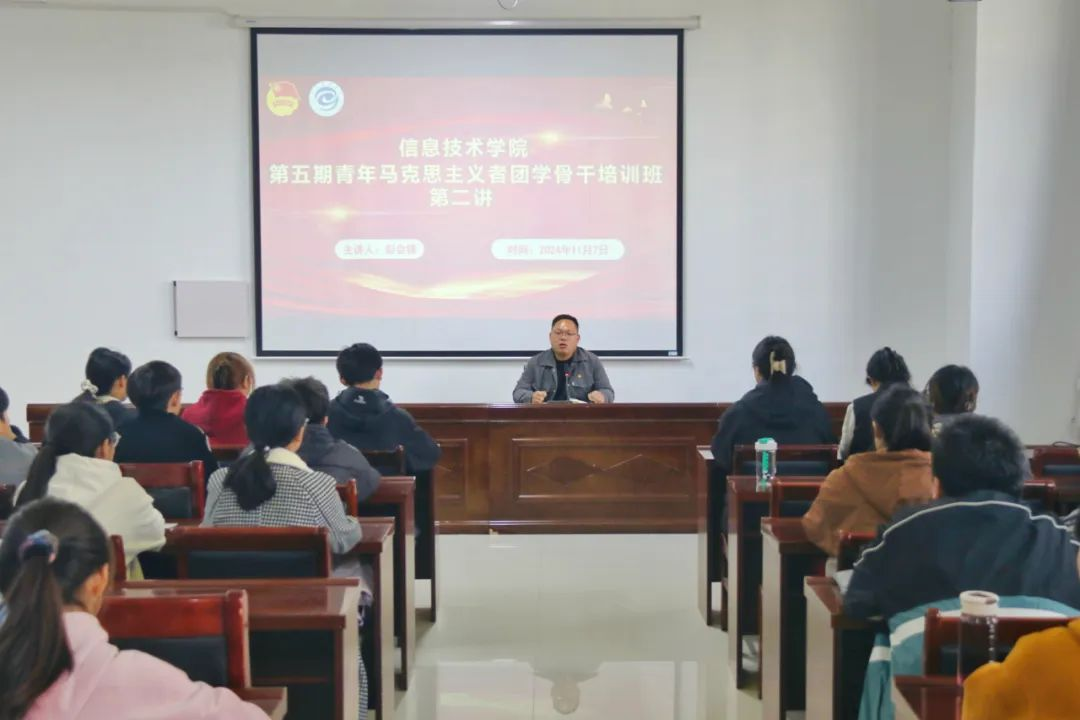 11月7日,万象城娱乐awc线路第五期青年马克思主义者团学骨干培训班第二讲在梁园校区三商楼112会议室顺利进行,万象城娱乐awc线路团委副书记彭会锋以及全体培训班学员共同参加培训。本次培训由彭会锋主讲。