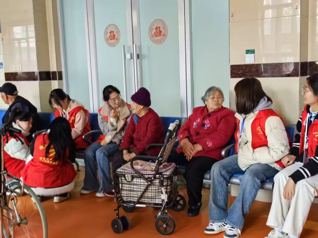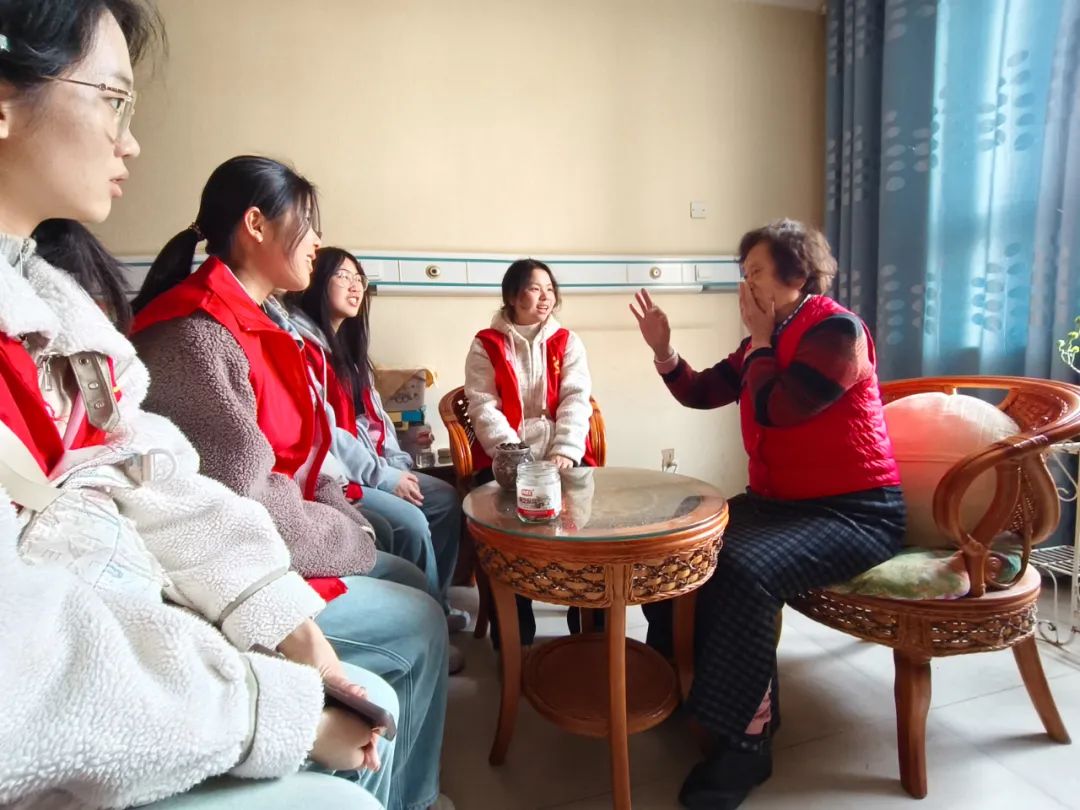 活动当天,志愿者们满怀热忱地踏入养老院。他们合唱《学习雷锋好榜样》,与老人们共同表演融合雷锋语录的手势舞,动作整齐且充满朝气,拉近了彼此心的距离。随后大家围坐聊天,老人们分享着生活中的难忘经历和人生感悟。之后,志愿者分组慰问老人,了解其生活起居和身体状况,并耐心倾听他们的日常故事。活动结束后,志愿者搀扶老人回房,为这美好一天画上了圆满句号。