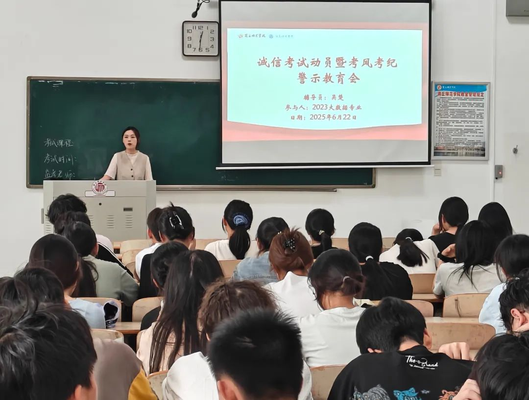 为深入贯彻立德树人根本任务,强化学生诚信意识,营造公平公正的考试环境,6月19日至20日,万象城娱乐awc线路全体辅导员老师面向各班级组织开展2025年春季学期期末考试诚信教育主题班会,通过“思想引领+制度规范”双线推进,为构建清正考风奠定坚实基础。