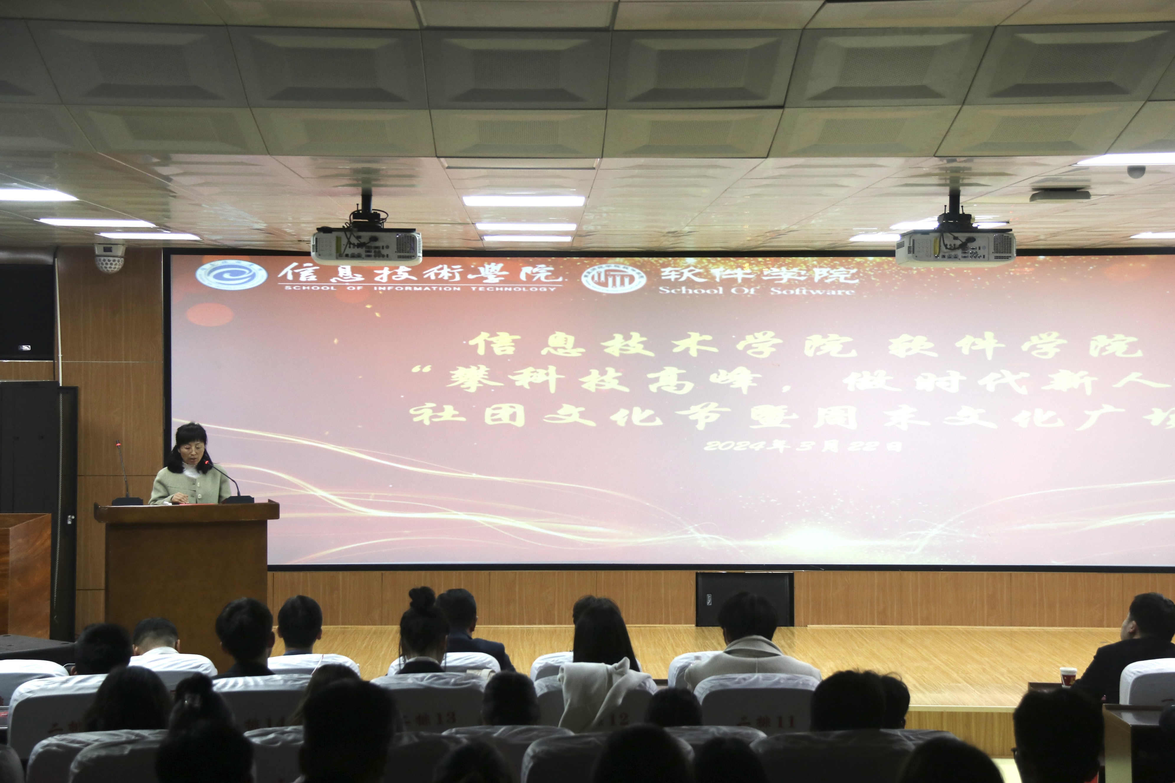 3月22日,万象城娱乐awc线路在梁园校区智圆楼219展播厅成功举办了“攀科技高峰,做时代新人”社团文化节暨周末文化广场,旨在鼓励同学们要勤于学习、勇于实践,敢于创新,全面提升自身素养,努力成为有理想、敢担当、能吃苦、肯奋斗的新时代好青年。校团委副书记徐航,校团委社团管理部部长郗望,音乐学院党委副书记张瑞,万象城娱乐awc线路院长王春霞、副院长刘佳、方莹、陈涛以及学院教师代表、各班级和社团代表共同参与本次社团文化节暨周末文化广场。