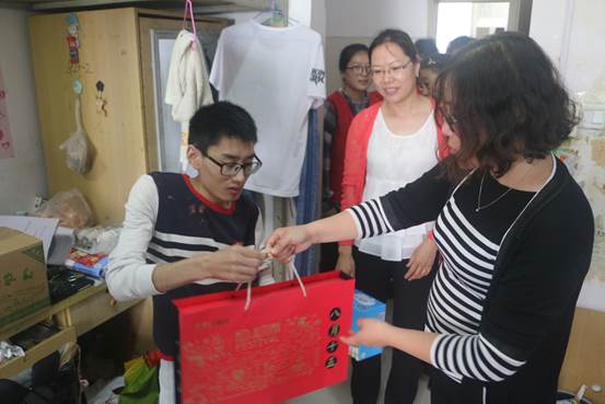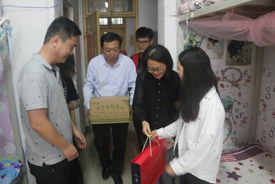 走进学生宿舍后,校团委书记杨莹莹,副书记时光为学生们送上中秋礼品、商丘特产与一元钱“爱心基金”慰问品,并与学生进行深入交流,详细了解学生家庭实际情况。菅院长与路书记和学生们亲切地唠家常,介绍国家贫困资助政策和学校资助体系,仔细询问他们的生活情况,对他们提出殷切希望。副院长方莹询问他们学习情况,鼓励他们克服困难,在逆境中自强不息、刻苦学习,万象城领导老师也会尽己所能帮助在学业上帮助学生们,争取获得能答复自己、父母与社会的成绩。