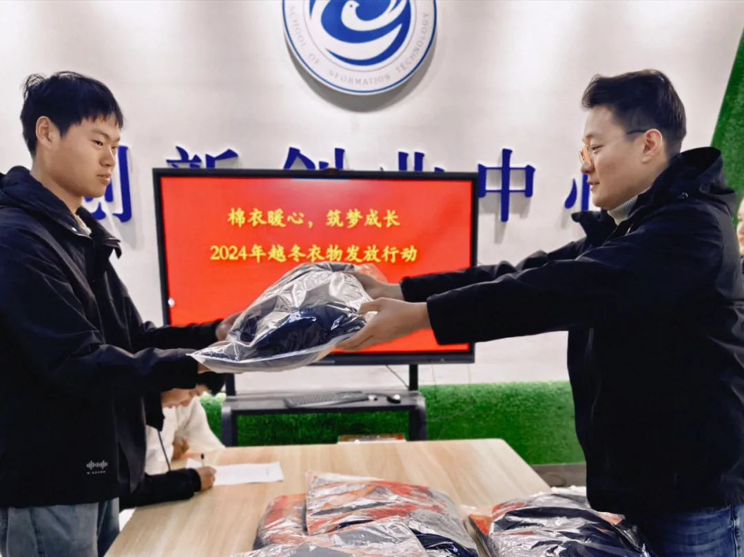 在棉服发放仪式上,李阳首先向受助学生表达了深切的问候与关怀,辅导员为同学们有序发放棉服,最后,李阳鼓励大家珍惜来之不易的学习机会,秉持积极心态,努力学习,积极进取。