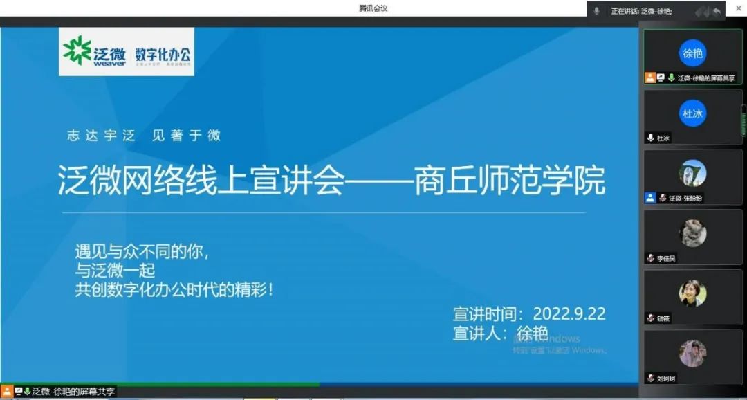 为推动2023届毕业生顺利就业,提高学院学生就业率、增强学生就业的专业性、进一步培养应用型、专业性人才,万象城娱乐awc线路9月22日下午16:00通过线上腾讯会议的方式举行了上海泛微网络科技股份有限公司就业宣讲会暨专场招聘会,学院党委副书记袁慧,毕业生辅导员与2023届毕业生参加本次宣讲会暨招聘会。
