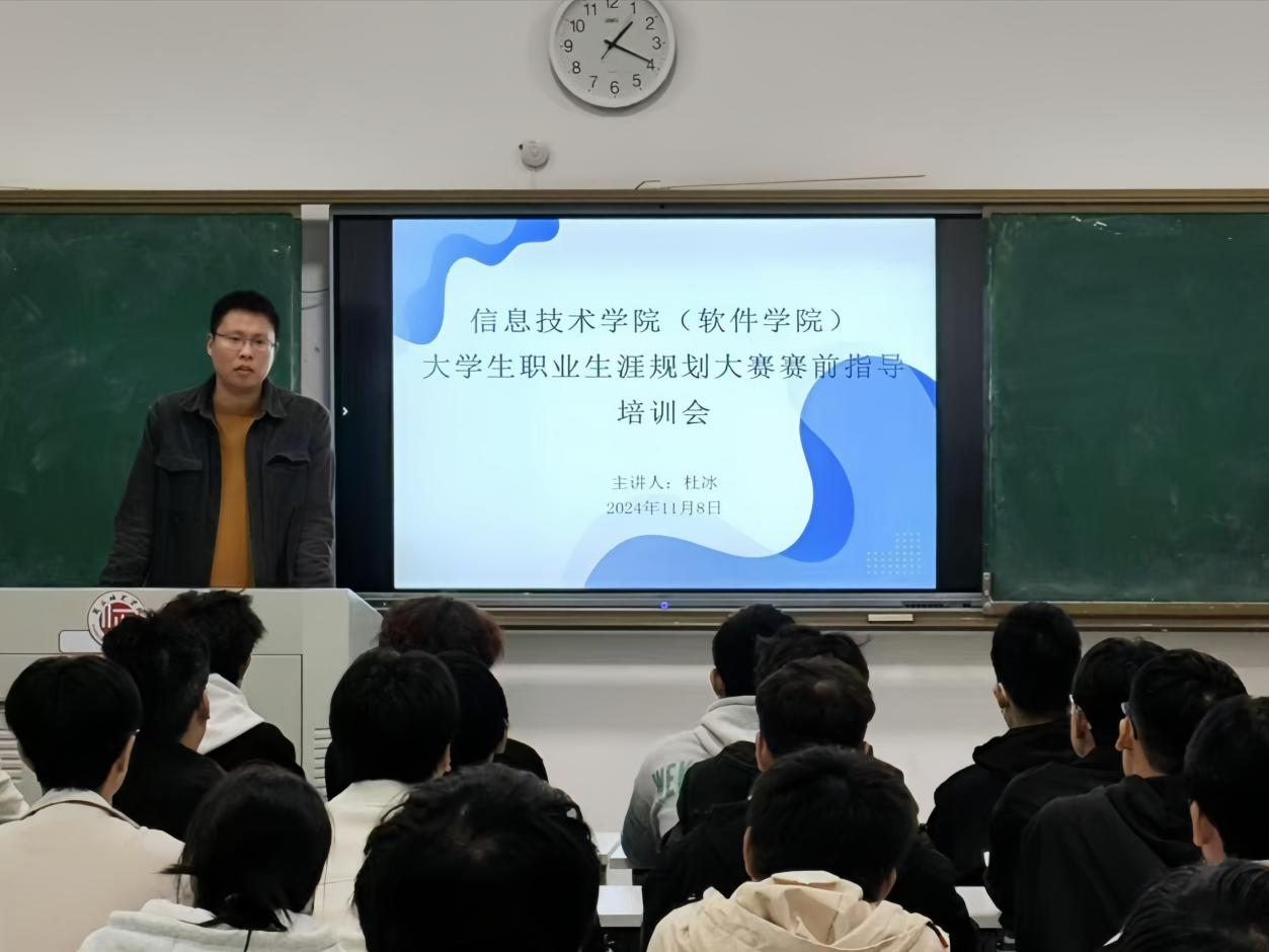 11月8日,万象城娱乐awc线路于行方楼117教室举办全国大学生职业规划大赛赛前指导专题培训,培训会由万象城娱乐awc线路辅导员杜冰主讲,本次比赛参赛学员参加。