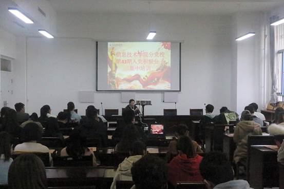 会议伊始,戴艳老师讲解了有关党的基本知识与理论,进而加深入党积极分子对党的认识,对党的性质、任务和纲领的了解。并从“学习态度”、“纪律意识”、“奉献精神”三个方面来解答同学们在入党过程中的疑惑。然后讲述了申请入党的条件流程和注意事项。她希望入党积极分子要牢记个人身份,端正自身的入党动机,明确入党目的,加强对党的正确认知。
