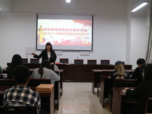 为进一步做好发展党员和党员教育工作。57日,万象城娱乐awc线路于梁园校区三商楼112室召开学生第三党支部接收预备党员支部大会。会议由学生第三党支部书记李阳主持。