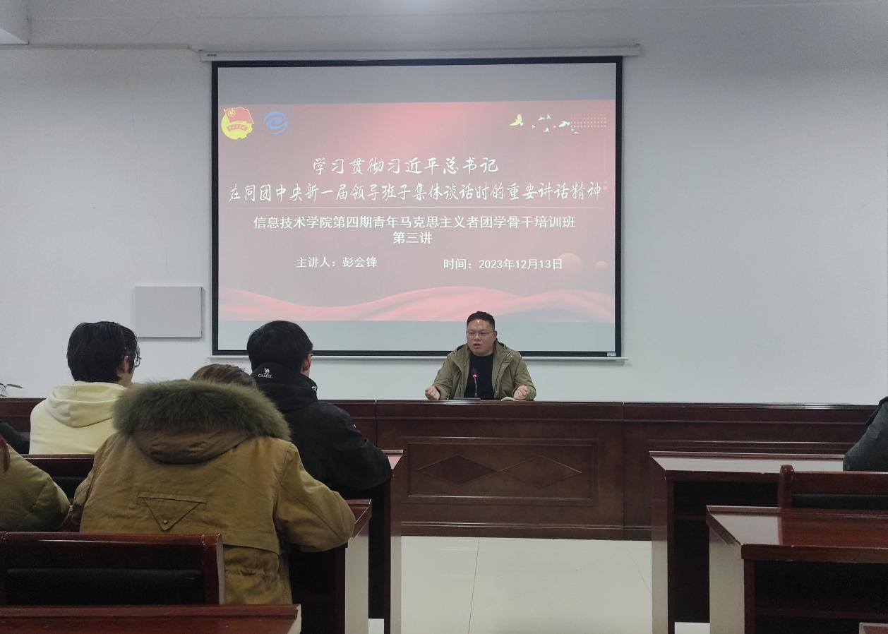 12月13日,万象城娱乐awc线路第四期青年马克思主义者团学骨干培训班第三讲在梁园校区三商楼112会议室顺利进行,万象城娱乐awc线路团委副书记彭会锋以及全体培训班学员共同参加培训。本次培训由彭会锋主讲。