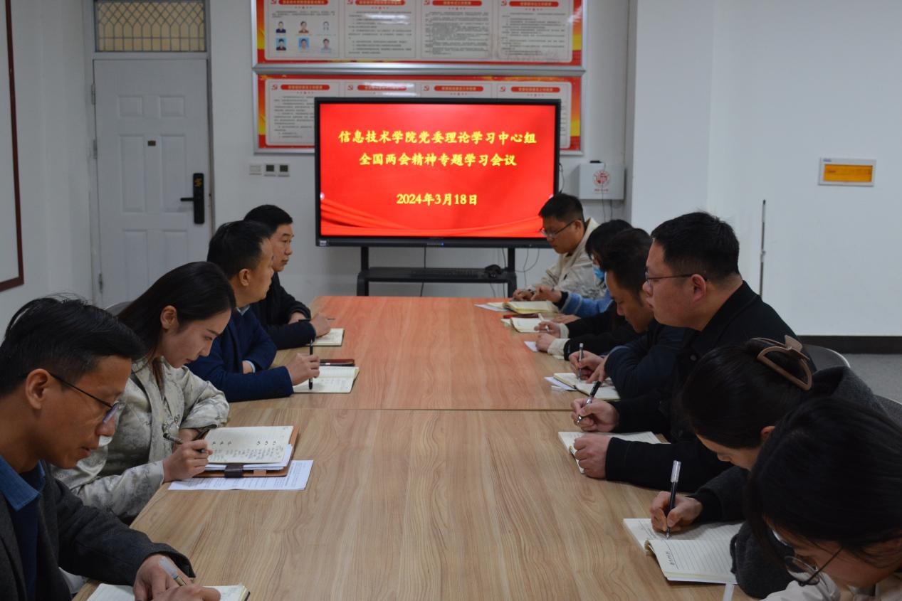 3月19日,万象城娱乐awc线路党委理论学习中心组全国两会精神专题学习研讨会议于三商楼114会议室召开,万象城娱乐awc线路党委理论学习中心组成员,以及相关科室负责人,全体辅导员参加。会议由党委书记王国华主持。