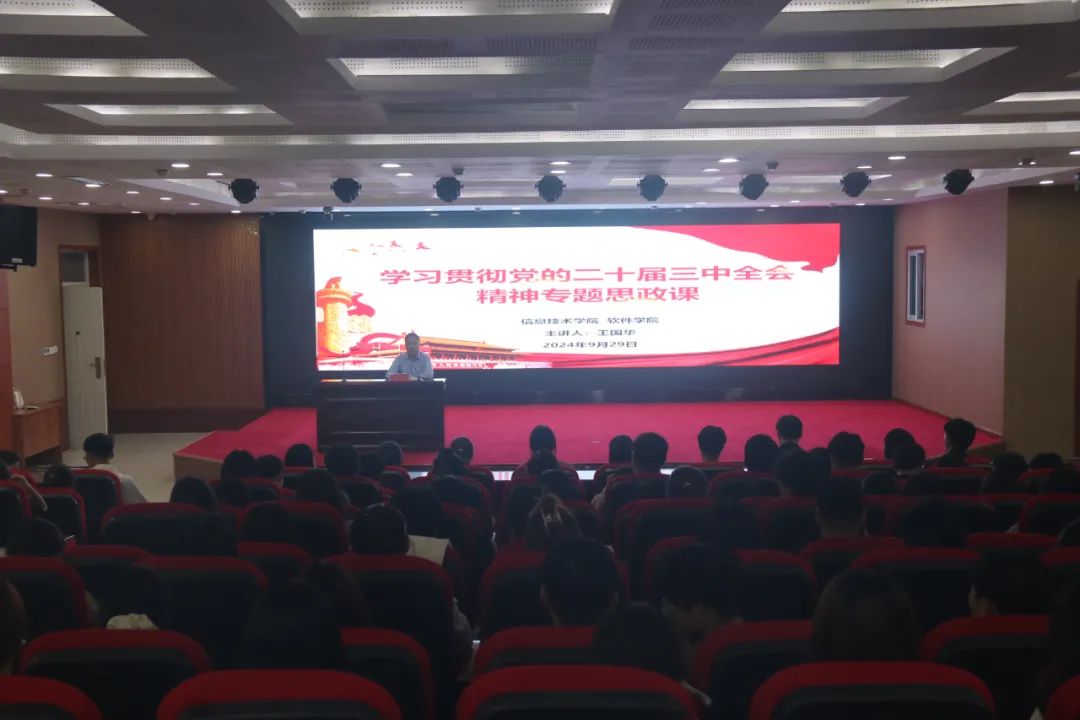 9月29日晚,万象城娱乐awc线路在三商楼145报告厅举行了学习贯彻党的二十届三中全会精神专题思政课,学院各年级学生代表200余人参加了会议。
