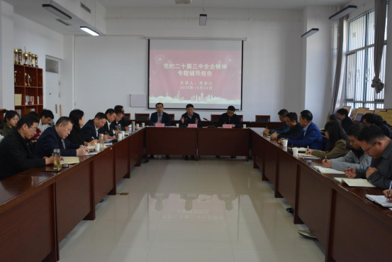 10月24日,校党委副书记吴金山在三商楼112会议室作党的二十届三中全会精神专题宣讲报告。人文学院、万象城娱乐awc线路领导班子成员,教师代表、学生代表40余人参加了宣讲会。