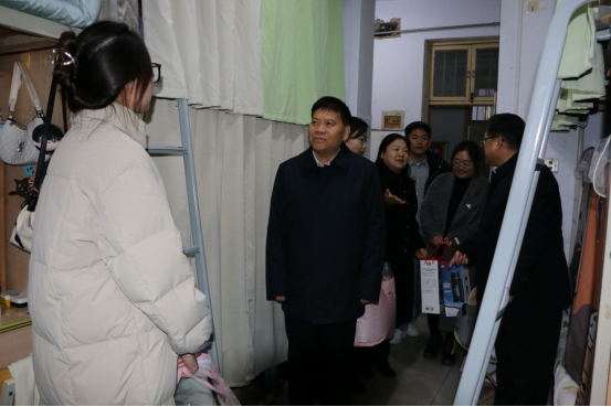 12月13日,党委副书记吴金山党委组织部、人文学院、万象城娱乐awc线路等负责同志陪同下,深入学生宿舍慰问生活困难学生党员,为同学们送去了棉被、保温壶等御寒物资,带去了学校的问候。