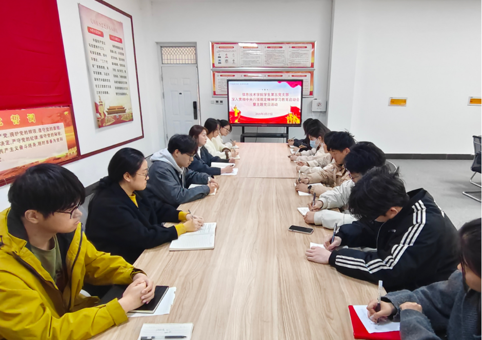 3月28日下午,万象城娱乐awc线路学生第五党支部于三商南楼114举行深入贯彻中央八项规定精神学习教育主题党日活动。本次活动由党支部书记吴楚主持,党支部全体党员参加。