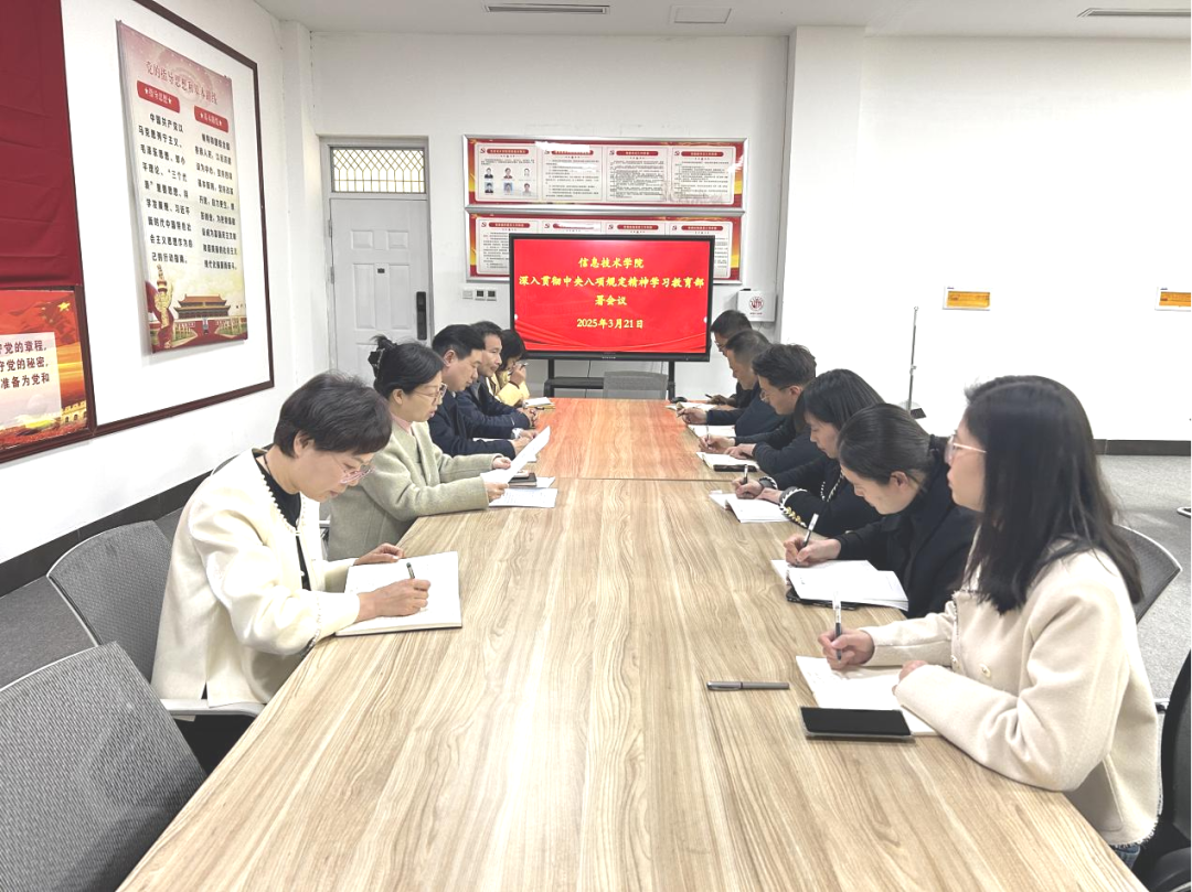 3月21日,万象城娱乐awc线路举行深入贯彻中央八项规定精神学习教育部署会,传达中央相关会议文件精神和学校党委工作要求,对学院层面开展深入贯彻中央八项规定精神学习教育进行部署。学院院长王春霞主持会议,各党支部书记参加会议。