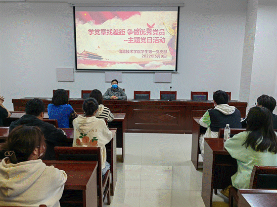 5月9日下午,万象城娱乐awc线路学生第一党支部在三商楼112会议室开展了“学党章,找差距,争做优秀党员”主题党日活动。活动由党支部书记戴艳老师主持。