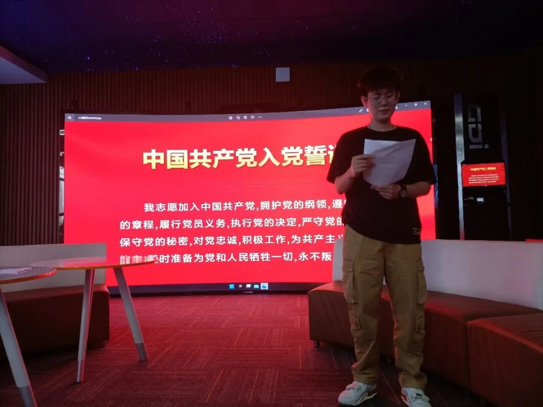 党日活动以“喜迎二十大,永远跟党走”为主题,组织全体党员集体观看红色电影《没有共产党就没有新中国》。随后,戴艳老师讲授主题党课,重温红色记忆。活动按照主题党课讲授、观看红色电影、红色歌曲大家唱、重温入党誓词四项内容依次进行。最后,大家唱响红色歌曲、分享感悟、畅谈体会,营造了喜迎党的二十大的浓厚氛围。
