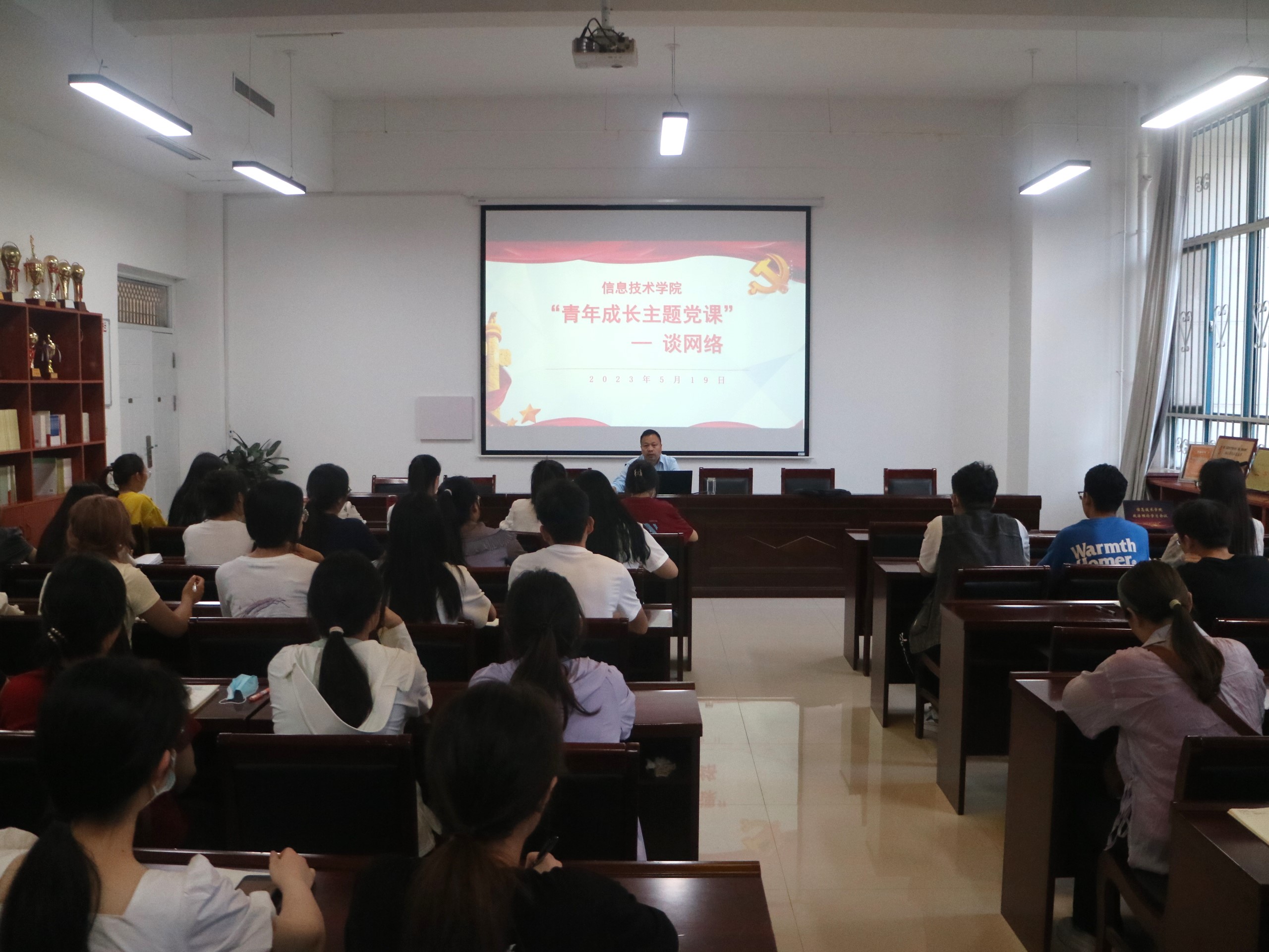 5月19日,万象城娱乐awc线路分党校在三商楼112会议室开展了以学习贯彻习近平新时代中国特色社会主义思想,立志做有理想、敢担当、能吃苦、肯奋斗的新时代好青年为主题的专题党课。本次专题党课由学院党委书记王国华主讲,第17期新发展的学生党员积极参与。