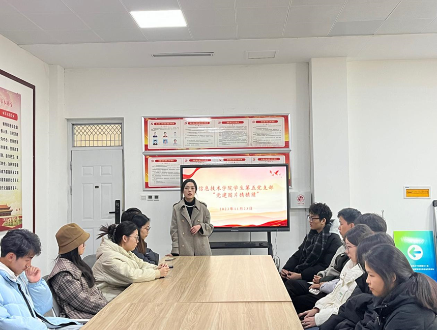 11月23日,万象城娱乐awc线路学生第五党支部在三商楼 114 会议室组织开展“党建图片猜猜猜”主题党日活动,党支部书记吴楚、全体党员和部分入党积极分子参加本次活动。