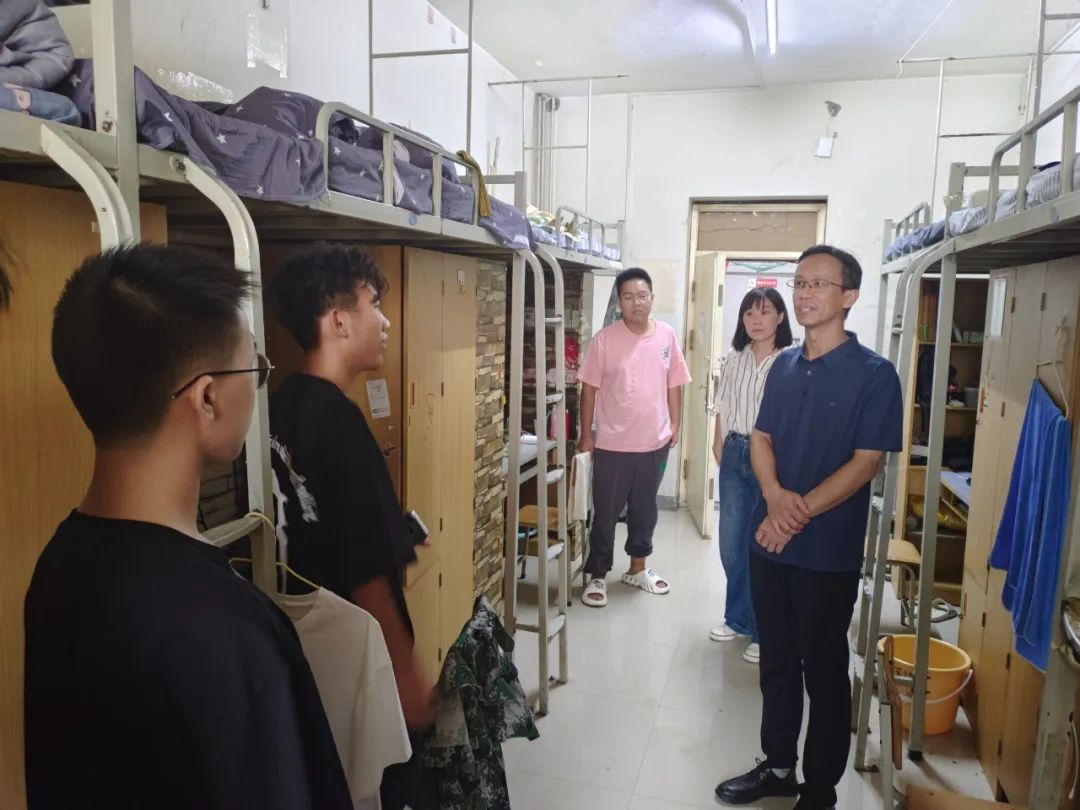 在走访慰问的过程中,学院领导与学生们展开了亲切的交流,了解同学们的思想、学习和生活状态,询问同学们对学院的建议和意见,并欢迎同学们积极向学院反馈问题。领导们叮嘱他们要提高安全意识,注意个人财产安全,重视消防安全,共同营造良好的学习和生活卫生环境。