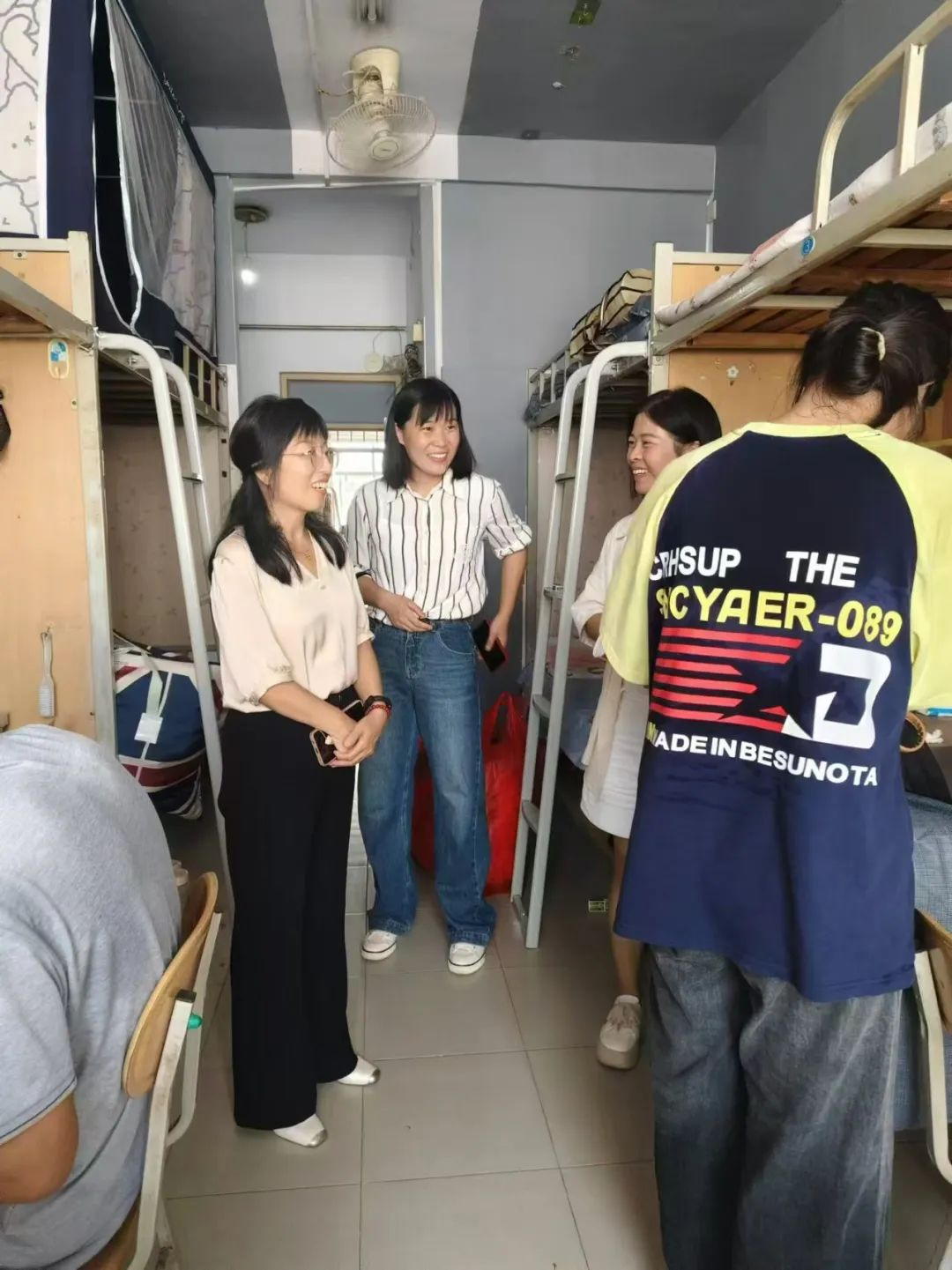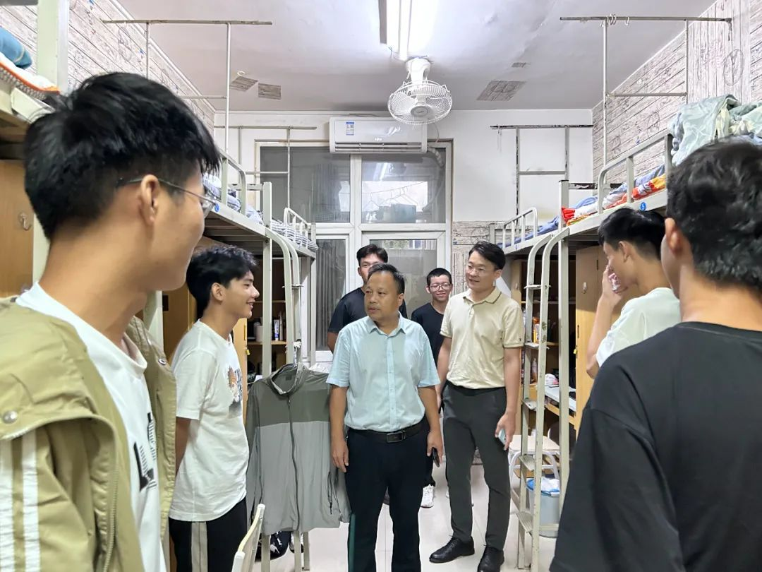 为深入了解2024级新生入学后的适应情况,及时知晓新生需求,帮助新生更好更快地融入新环境。9月8日,万象城娱乐awc线路党委书记王国华、院长王春霞、副院长方莹、刘佳、陈涛及全体辅导员老师走访慰问24级新生宿舍。