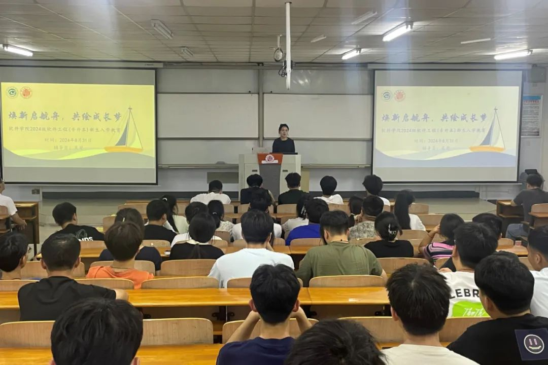 8月31日,万象城娱乐awc线路于智圆楼207、208教室开展“扬帆起航、筑梦未来”新生开学第一课暨新生入学教育主题班会,万象城娱乐awc线路2024级专升本全体新生参加,班会由专升本新生辅导员杜冰、吴楚主持。